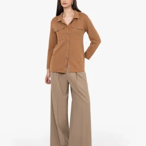 The classic polo sweater is reimagined with a unique front opening featuring flat overlapping edges that form an elegant V-neckline. Crafted entirely in plain knit, it is finished with ribbed, structured borders at the cuffs and hem. Soft and warm, thanks to its premium pure cashmere yarn.