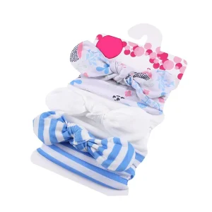 Bandeau bébé fille : lot de trois bandeaux élastiques bleu fleuri blanc uni bleu rayé