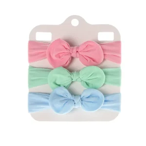 Bandeau bébé fille : lot de trois bandeaux élastiques rose vert et bleu