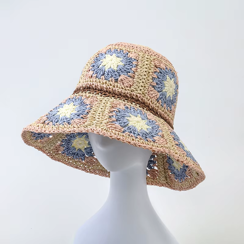 Chapeau Bob Coloré en Paille à Large Bord Retombant
