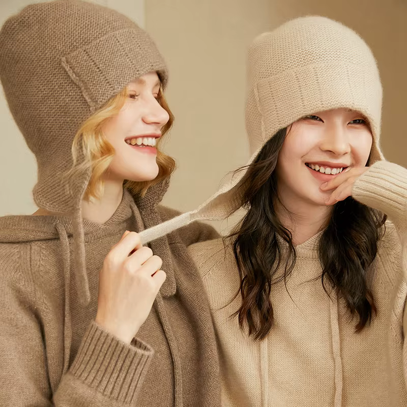 Bonnet Cagoule en Cachemire Côtelé