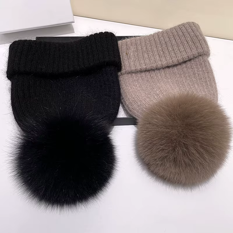 Bonnet à pompon en fourrure