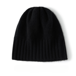 Bonnet Femme en Cachemire avec Ourlet Côtelé