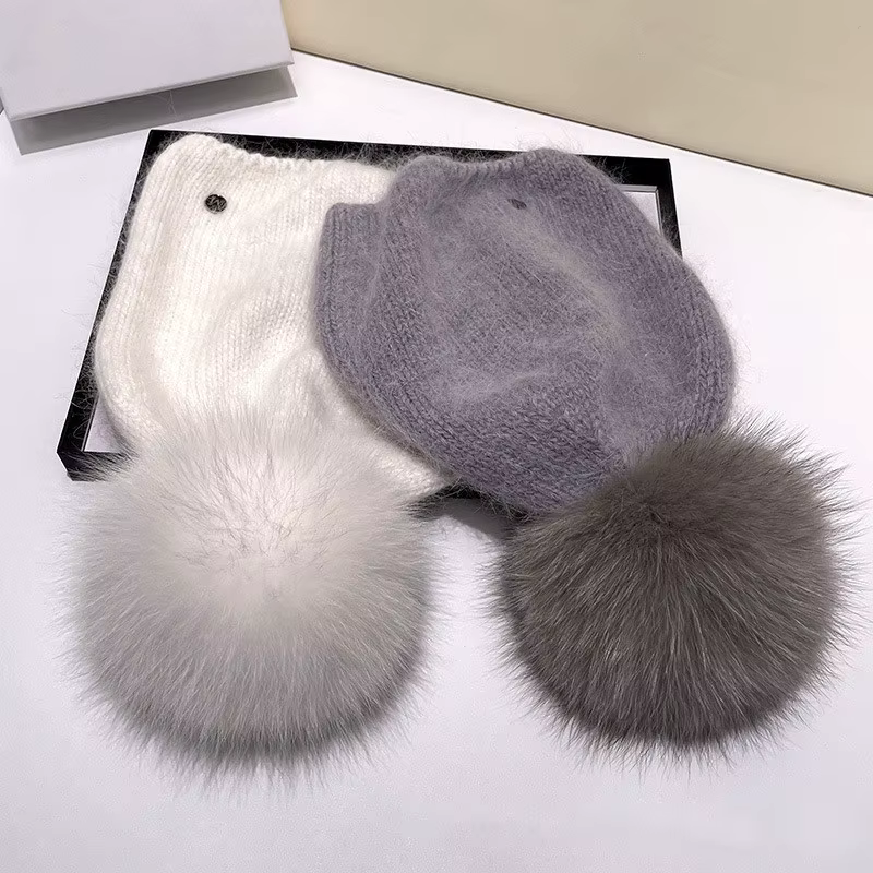 Bonnet à pompon en fourrure
