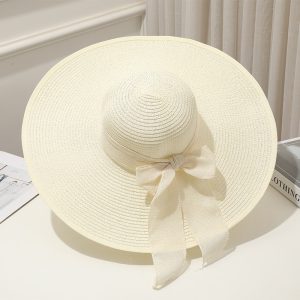 Chapeau de Paille pour Femme avec Ruban et Nœud Décoratif