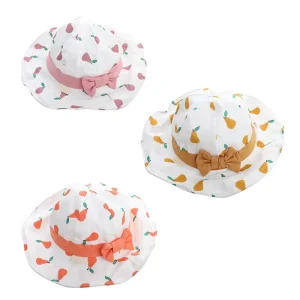 Chapeau de paille enfant à grande visière avec broderie de fruits