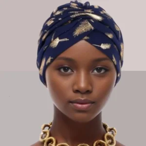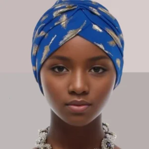 TURBAN FEMME – BLEU VIF ET ARGENT