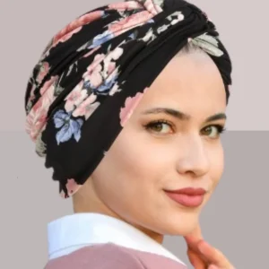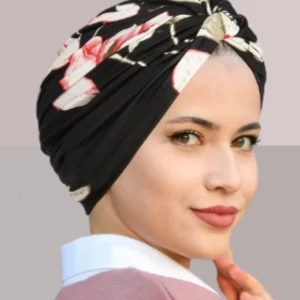 TURBAN FEMME CHIMIO – NOIR A FLEURS