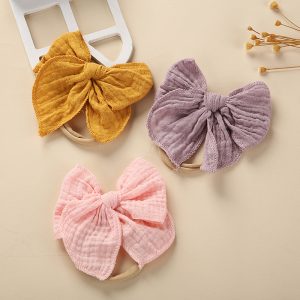 Bandeau bébé fille élastique en coton et lin avec gros nœud