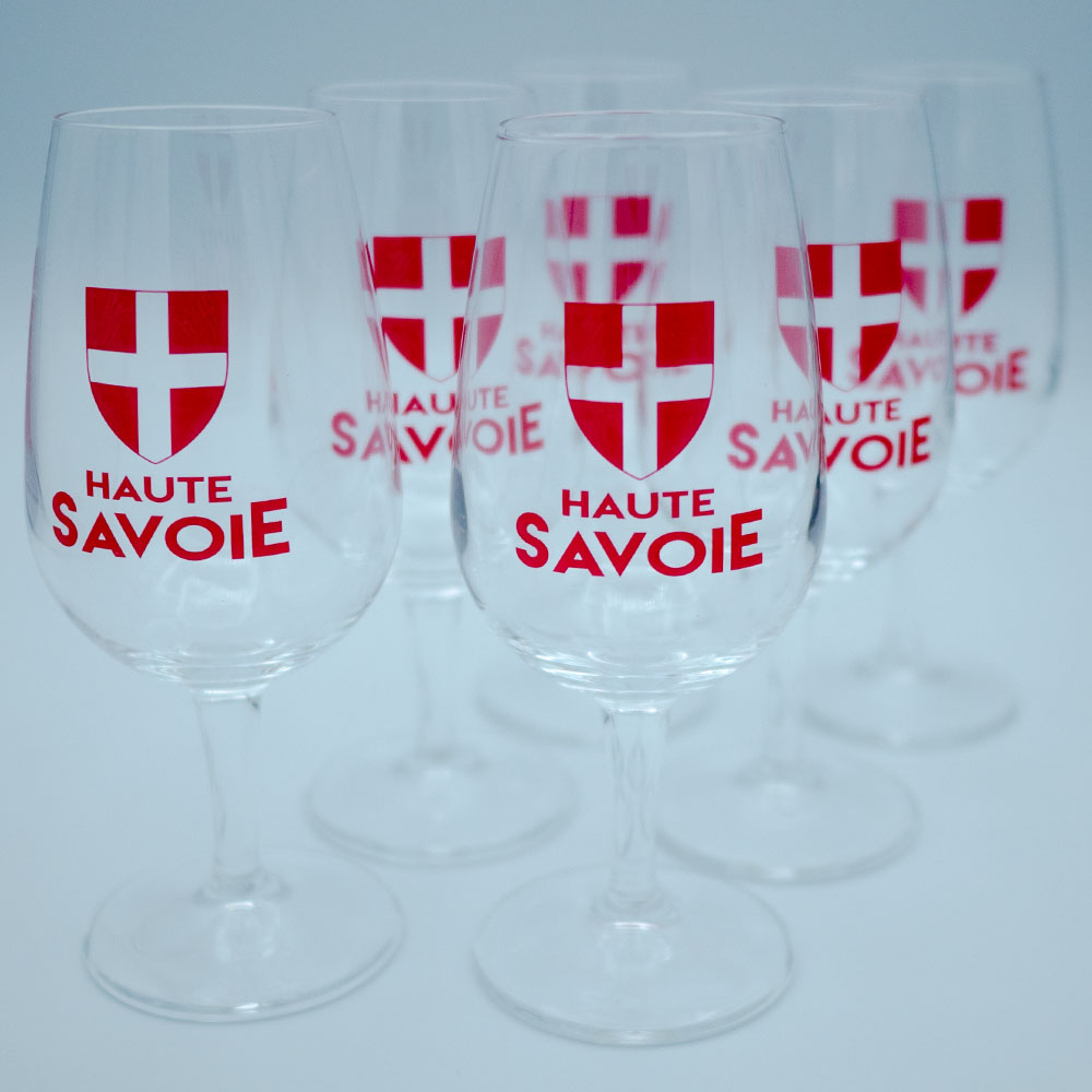 Affichez les couleurs dès l’apéro, grâce à ces verres à vin estampillés du logo de la Haute-Savoie.