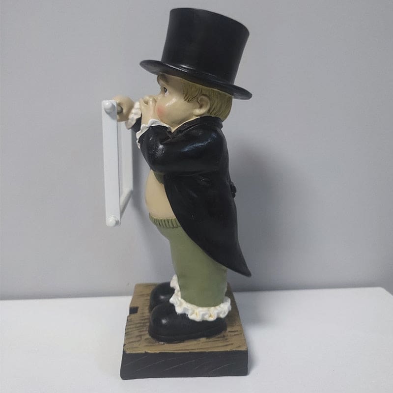 Un porte-papier toilette de 27 cm, avec un bonhomme qui se bouche le nez, parfait pour les toilettes des beaufs.