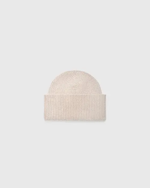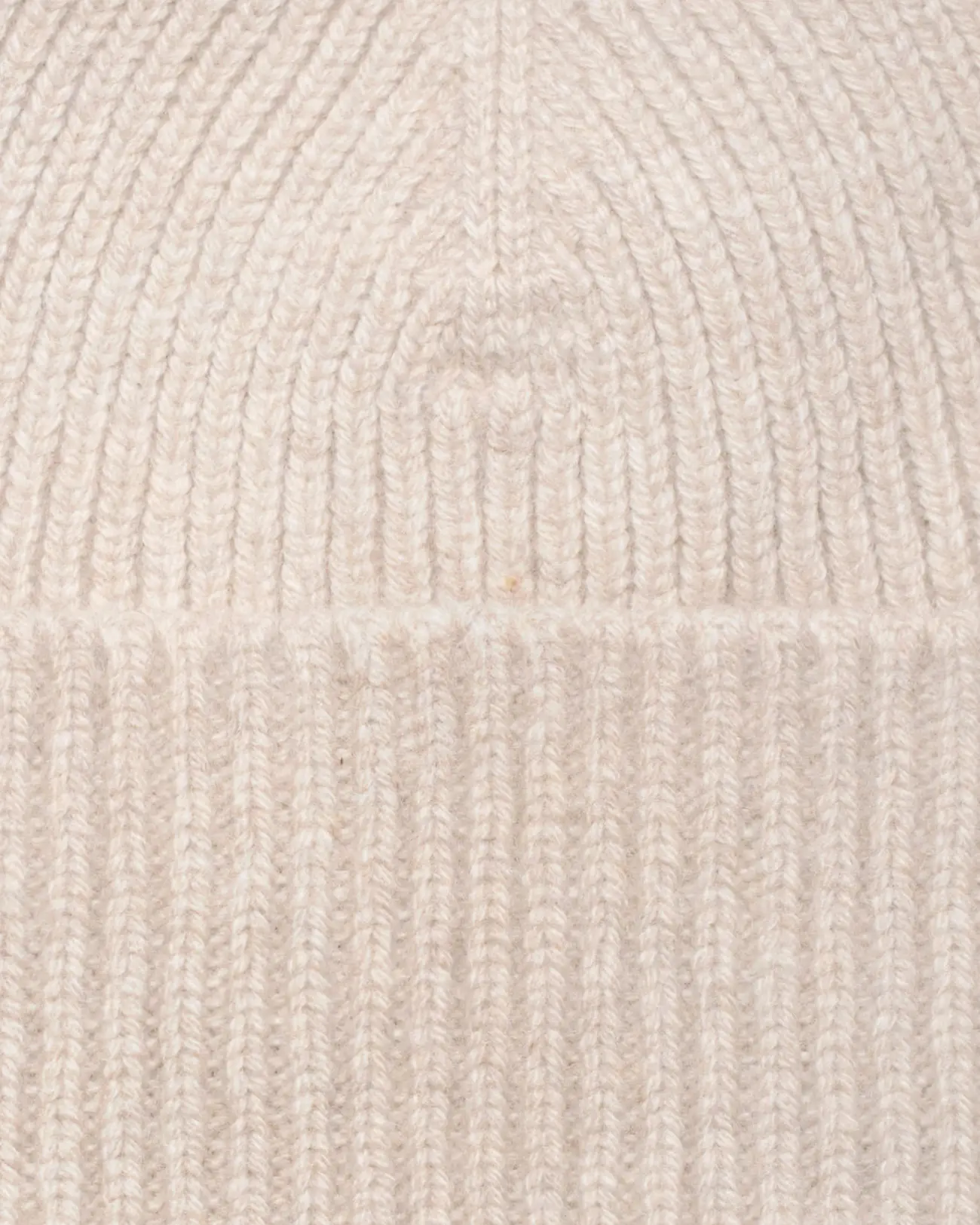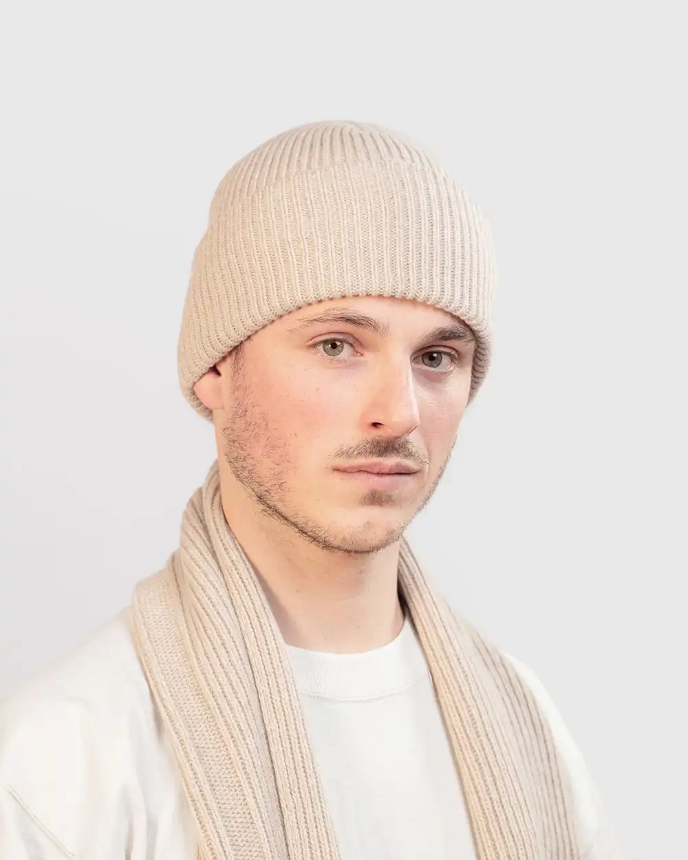 Ce bonnet en cachemire et laine régénérés est une enveloppe de douceur est un hymne à la circularité.