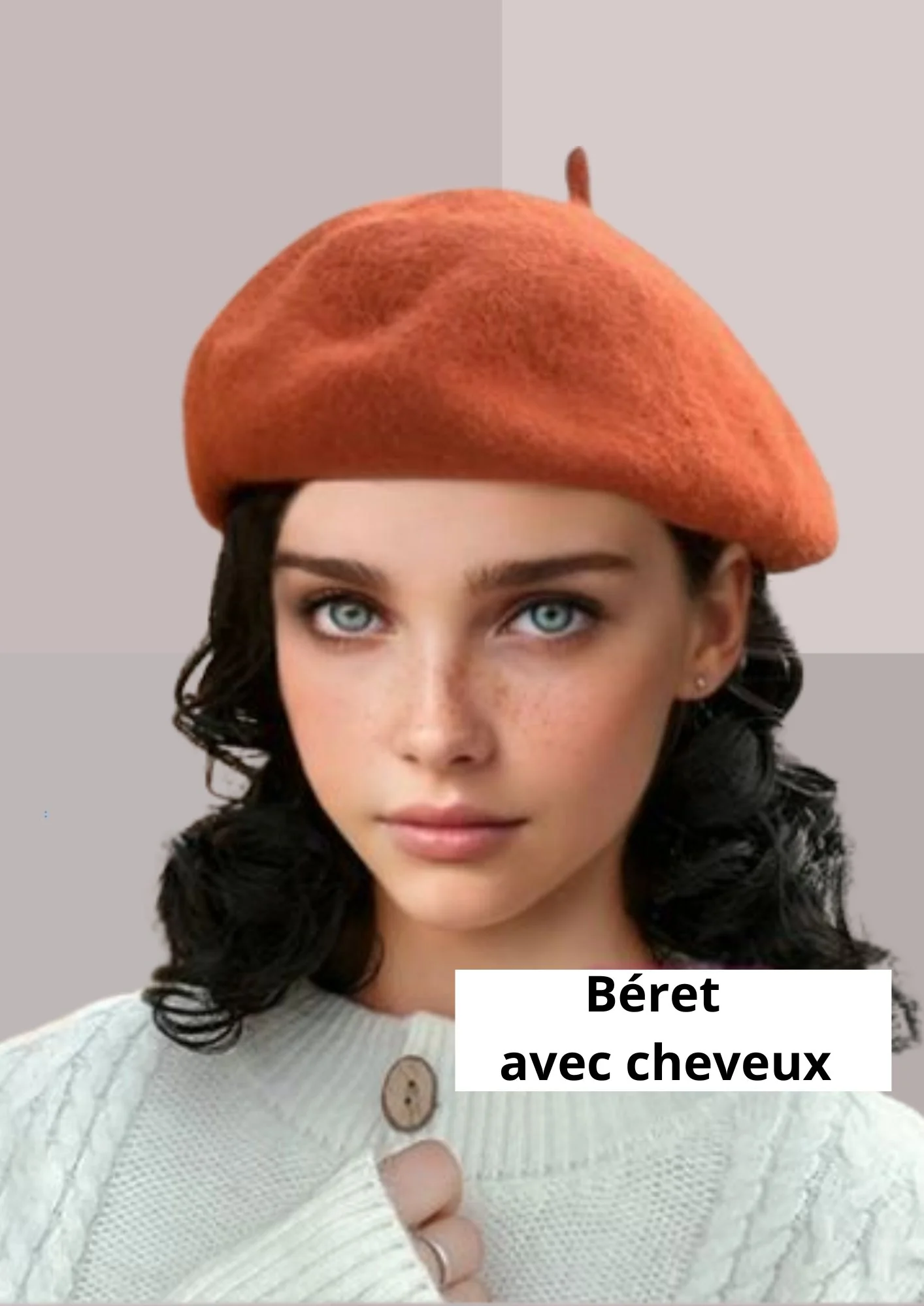 Optez pour le Béret avec Cheveux, l’Accessoire de Mode idéal pour un Style unique pendant une Chimio. Chic français, Élégance et Confiance au Rendez-vous.