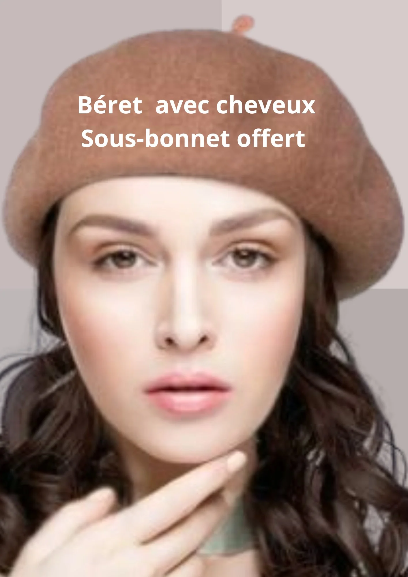 | Couleur | BERET BEIGE / CHEVEUX CHATAIN + BONNET DE CONFORT OFFERT, BERET BEIGE / CHEVEUX CHATAIN TRES FONCE – NOIR + BONNET DE CONFORT OFFERT |