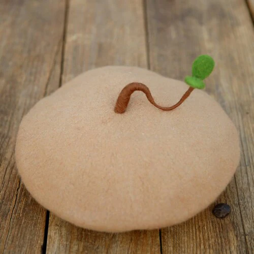 Avec son Look de Pomme de Terre germée, ce joli Béret Femme Luxe Beige est amusant et élégant. Remarquez la Petite Feuille pleine d’Humour !