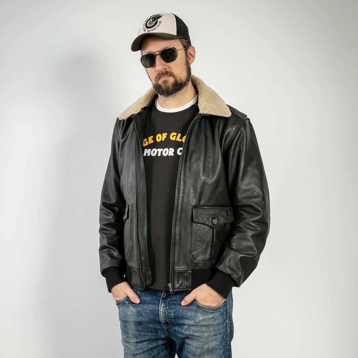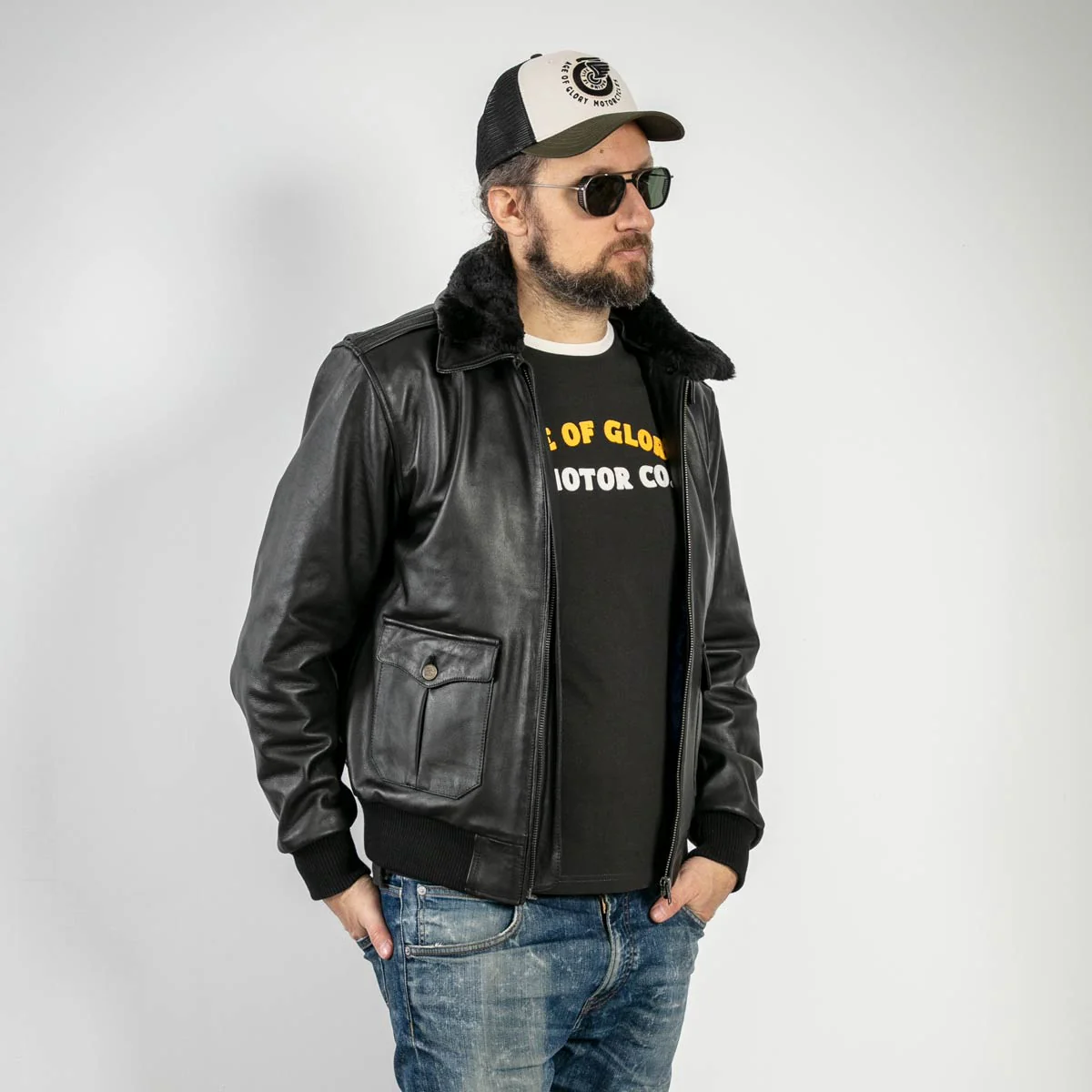 Chez Age of Glory, nous sommes fans des blousons vintage aviateur et nous voulions proposer dans notre gamme un blouson en cuir adapté à la moto mais qui rappelle les codes de ces blousons. C’est chose faite avec ce blouson Cockpit. Confectionné dans un cuir épais mais très confortable, on retrouve notre doublure « signature » en satin bleu et le col amovible en fausse fourrure noire. Vous aurez même la possibilité d’opter pour un autre col en moumoute blanche (vendue avec la veste) si vous le préférez.