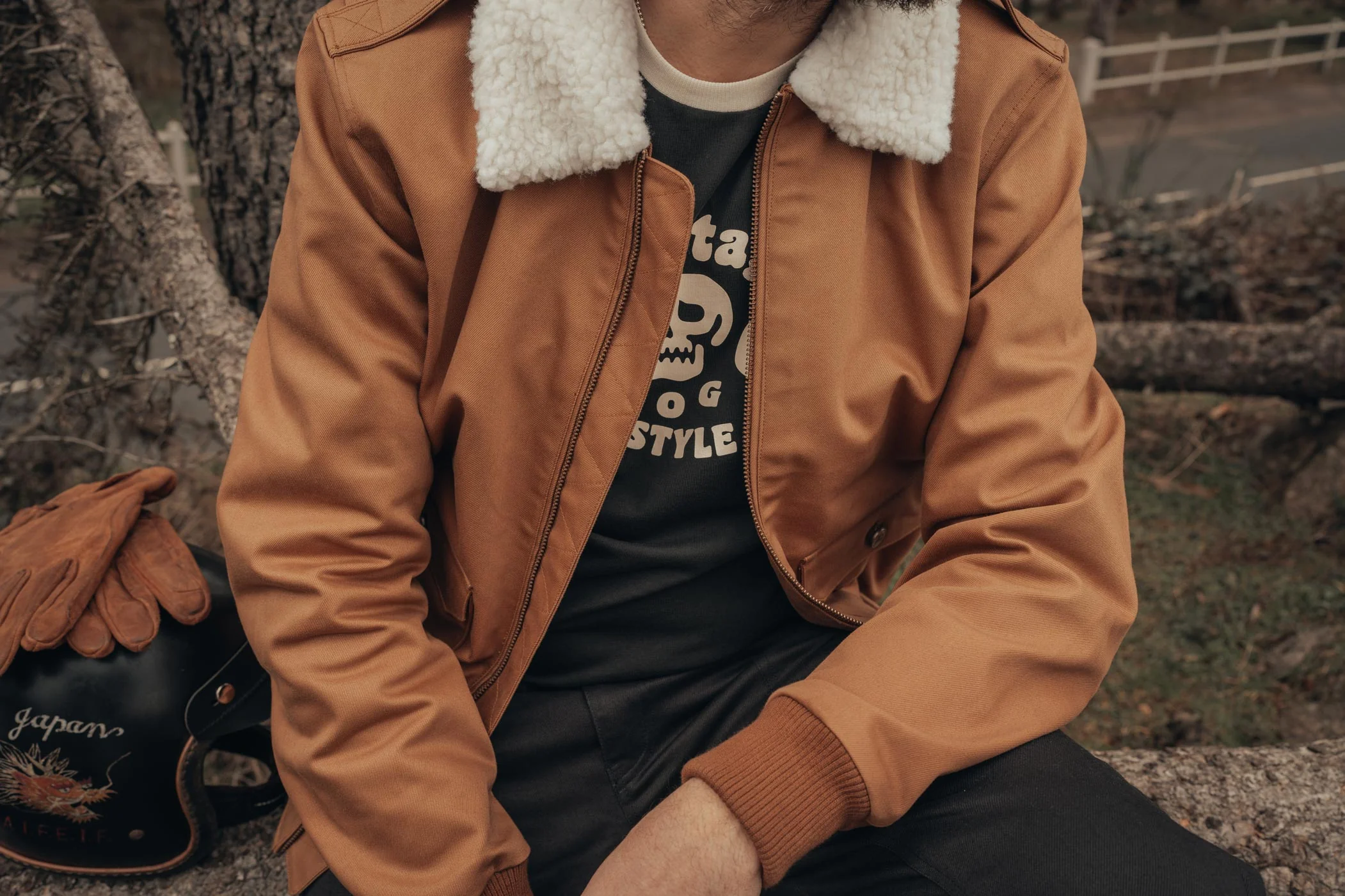 Blouson moto Cockpit en toile caramel