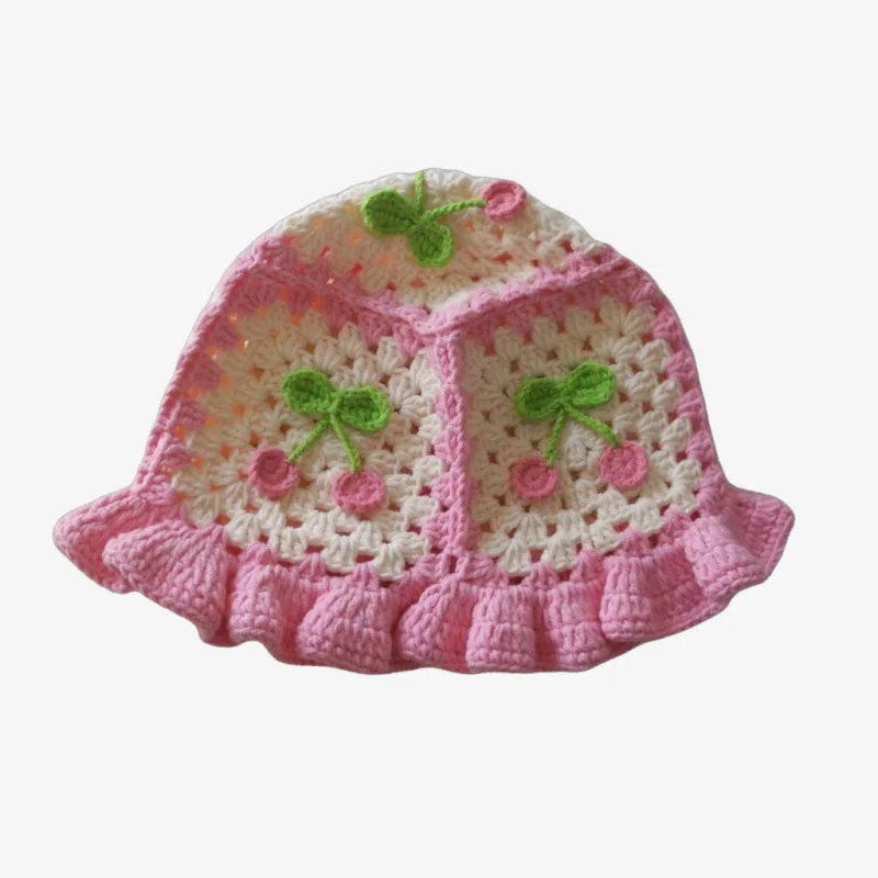 Tu cherches un bob chapeau qui sort de l’ordinaire ? Alors tu vas adorer notre bob crochet cerise !