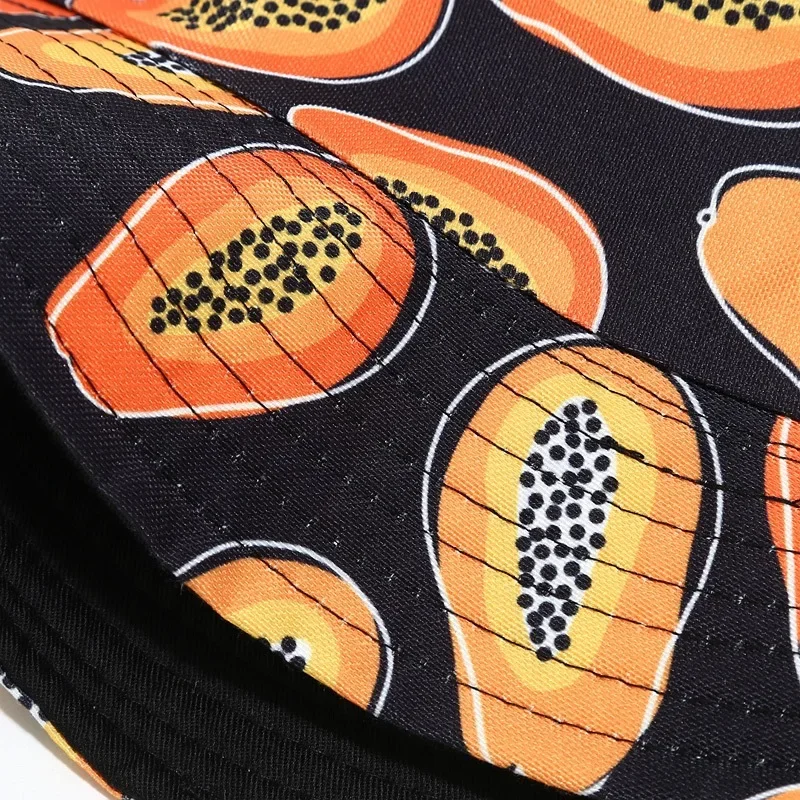 En plus, ce bob réversible te permet de changer de look en un claquement de doigts : un côté fun et fruité pour les journées ensoleillées, un côté uni pour un style plus discret. Fabriqué en coton léger, il se porte confortablement toute l’année et s’adapte à toutes tes envies.