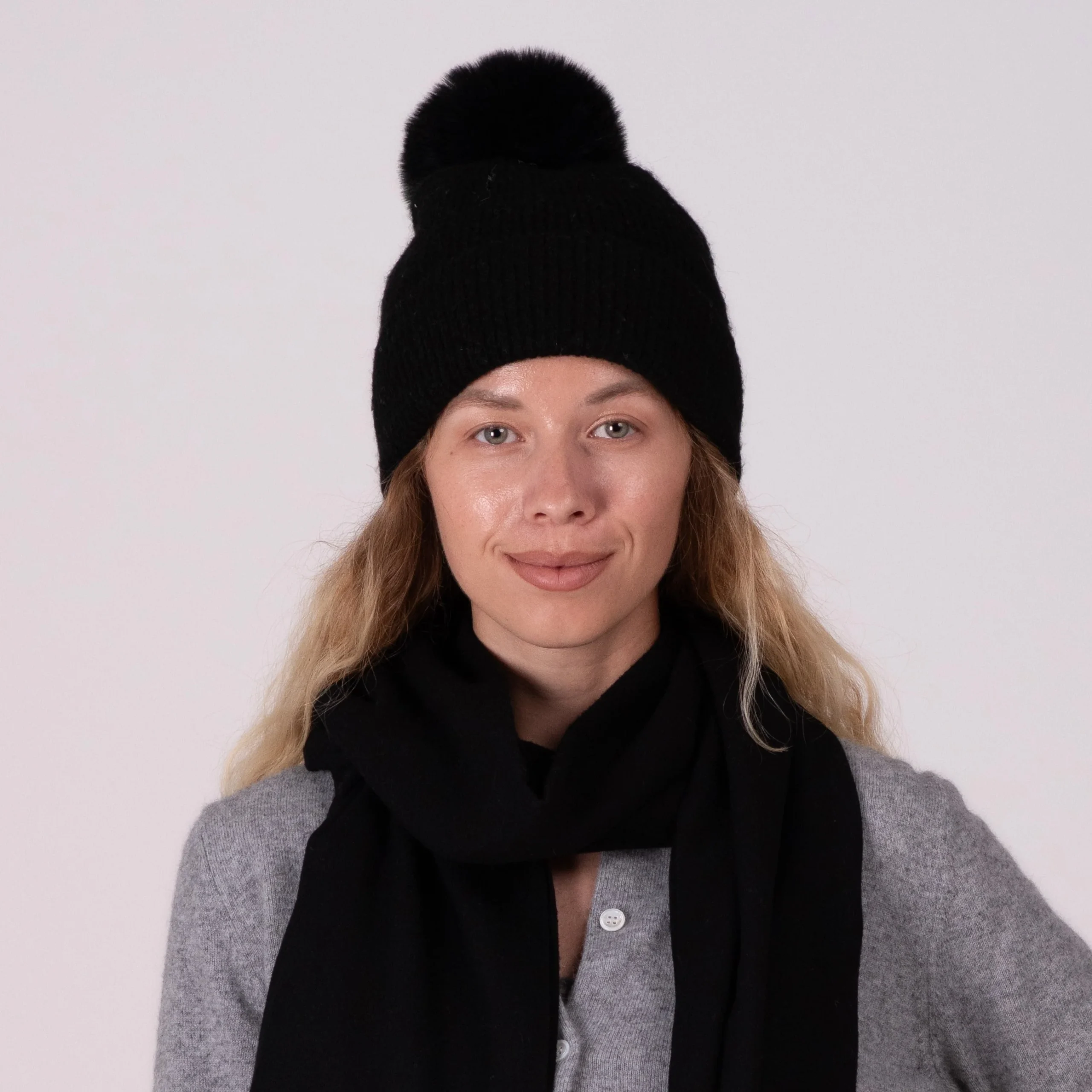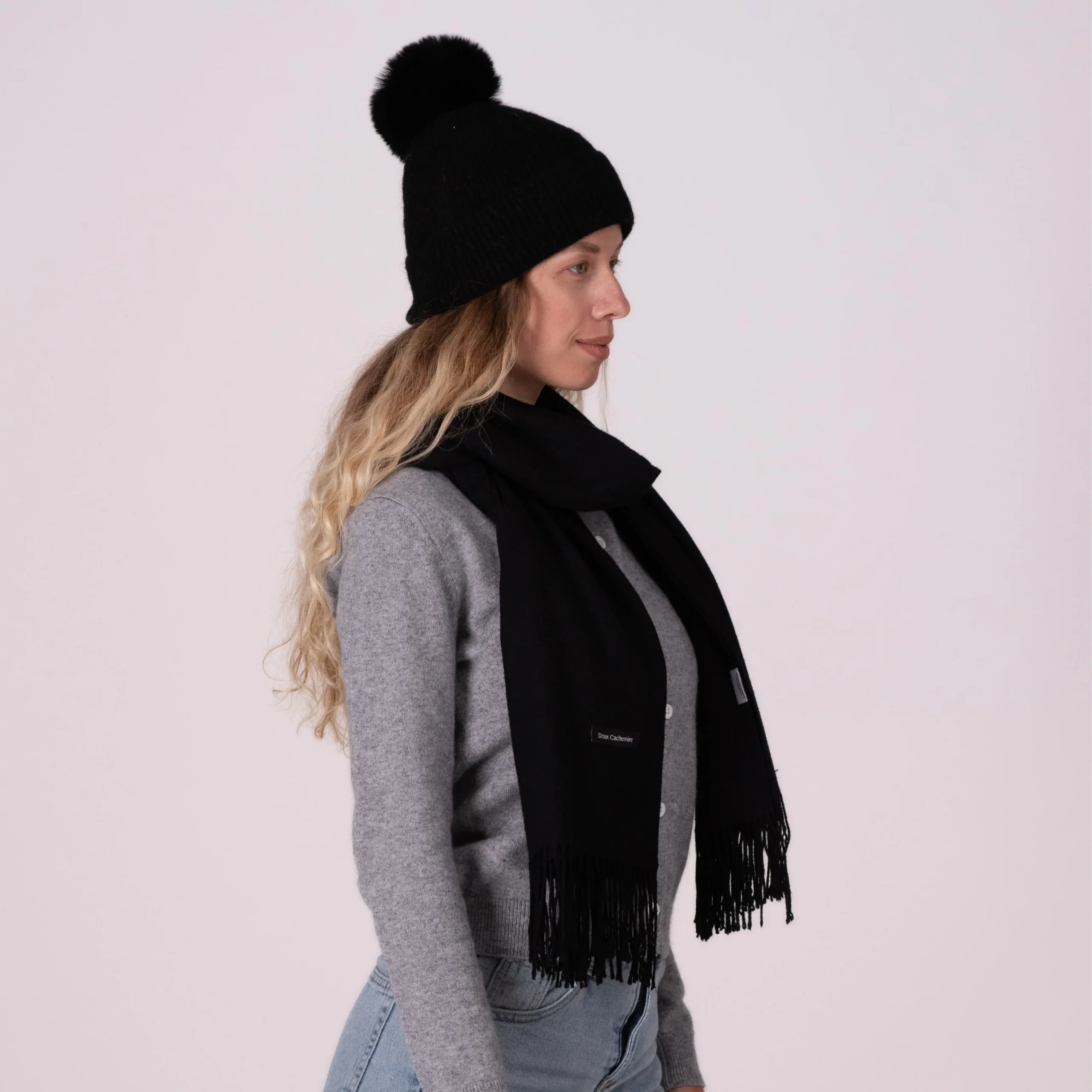 Bonnet cachemire noir pompon ultra chaud