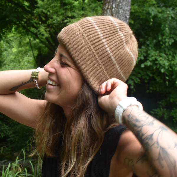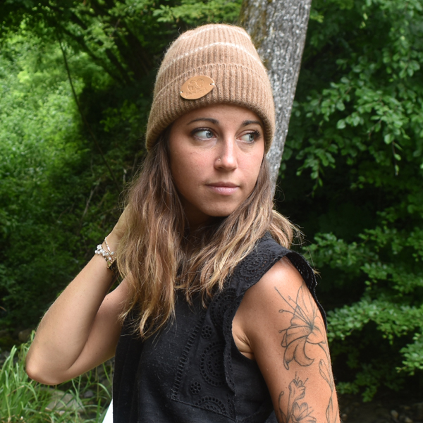 Bonnet unisexe en laine de chameau à pli simple en 100% poils de chameau extra fins. Un vêtement «zéro déchet» tricoté à partir de laine de Chameau de Mongolie luxueusement doux, extra-fin. La laine de chameau est obtenue par brossage manuel qui nous aide à récolter la partie la plus douce, de manière délicate, sans avoir perturbé les chameaux. La récolte de laine de chameau est comme toutes les autres laines, une fois par an, vers le mois de mai et juin. Si nous ne brossons pas la laine, elle tombe toute seule mais celle-ci perd en qualité et représente une perte financière pour les nomades. La laine de chameau donne naturellement deux couleurs : beige et marron.