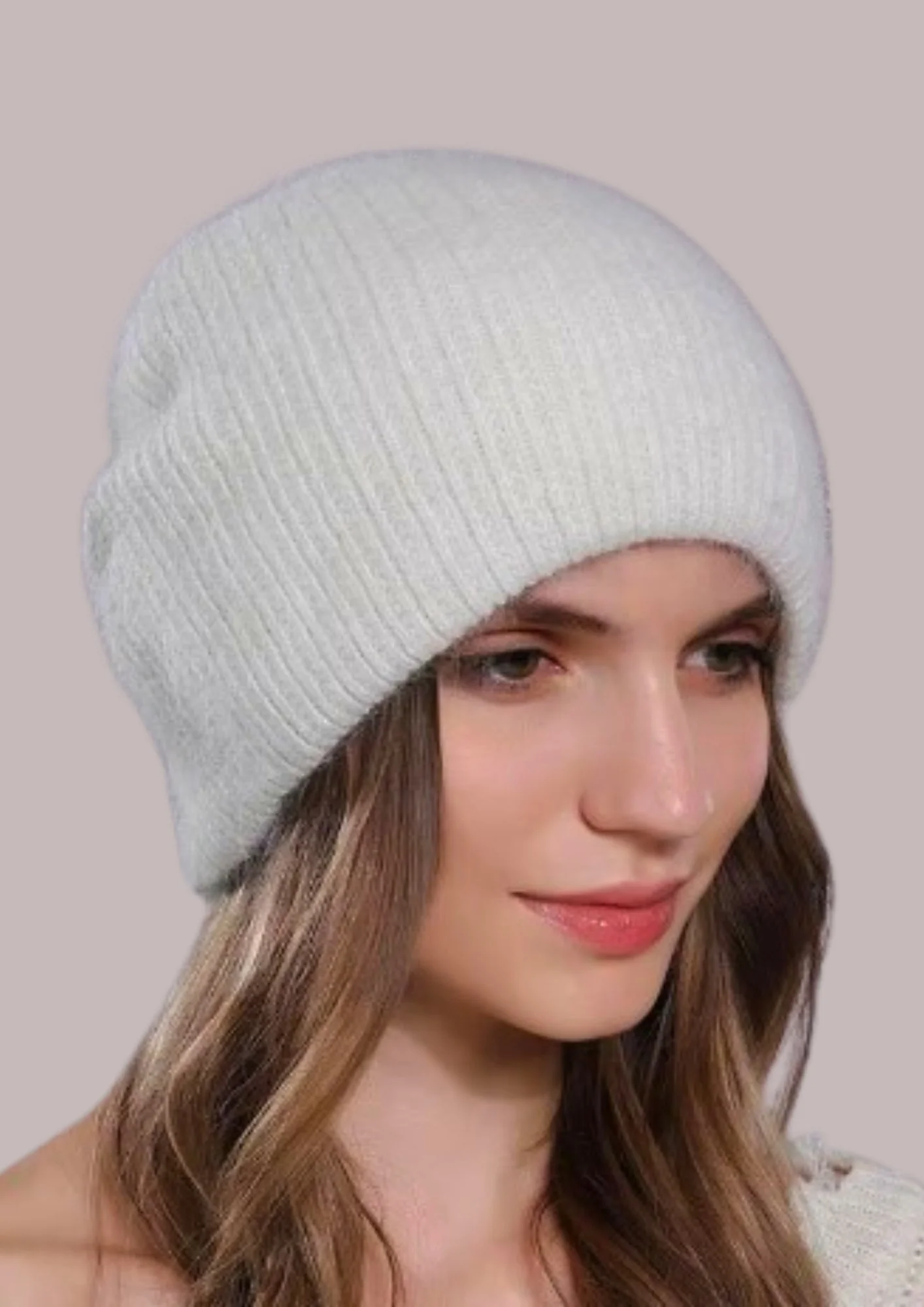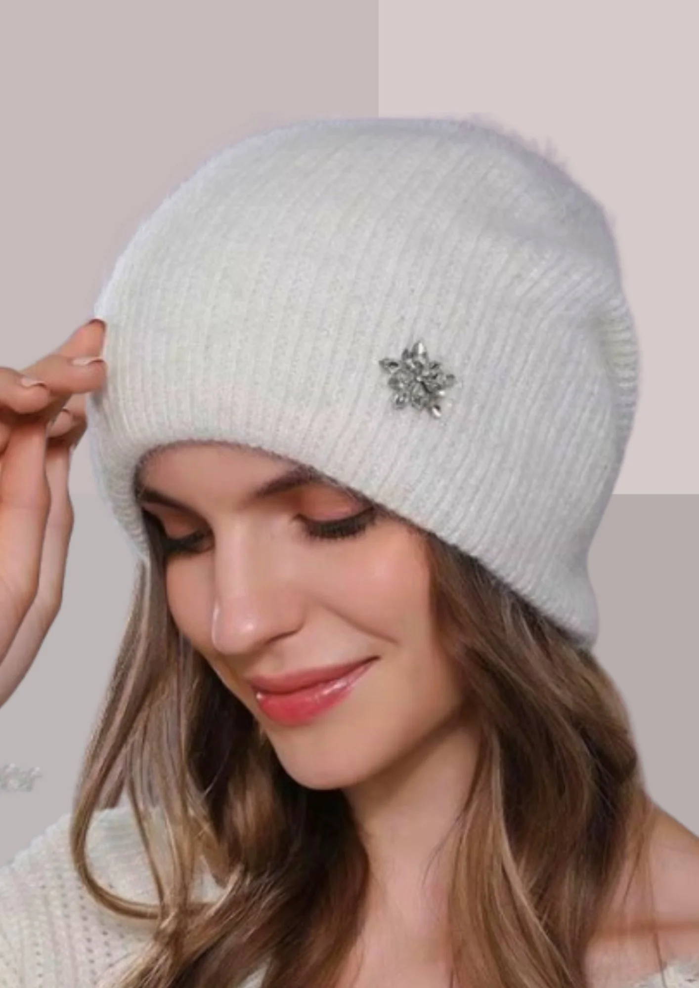 Le Bonnet Femme Hiver allie Confort, Chaleur et Elégance. Affrontez le Froid avec Raffinement et Style grâce à cet Accessoire blanc et brillant comme Neige !