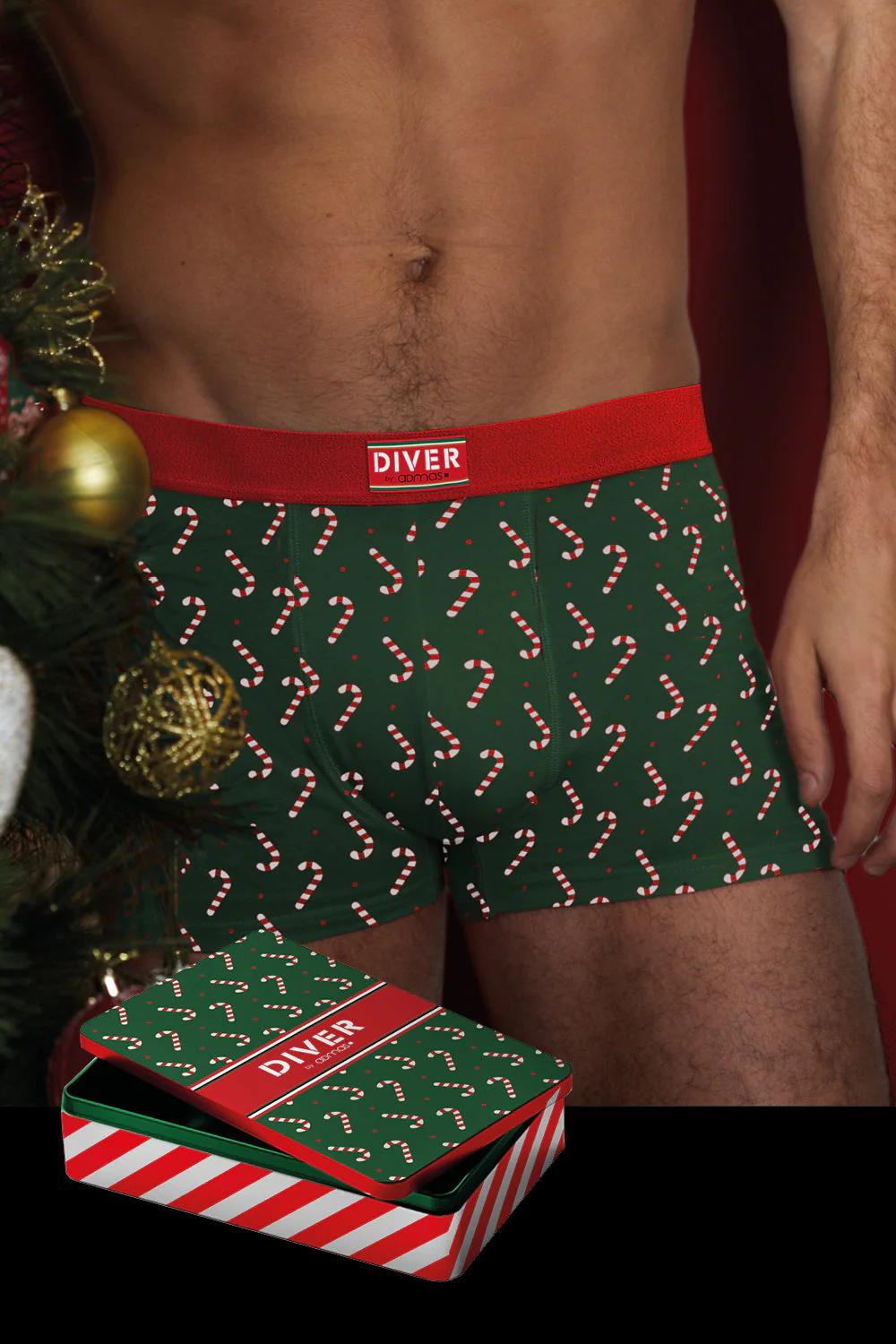 Boxer de Noël pour Homme Vert avec Cannes de Noël + Boîte Cadeau de Noël