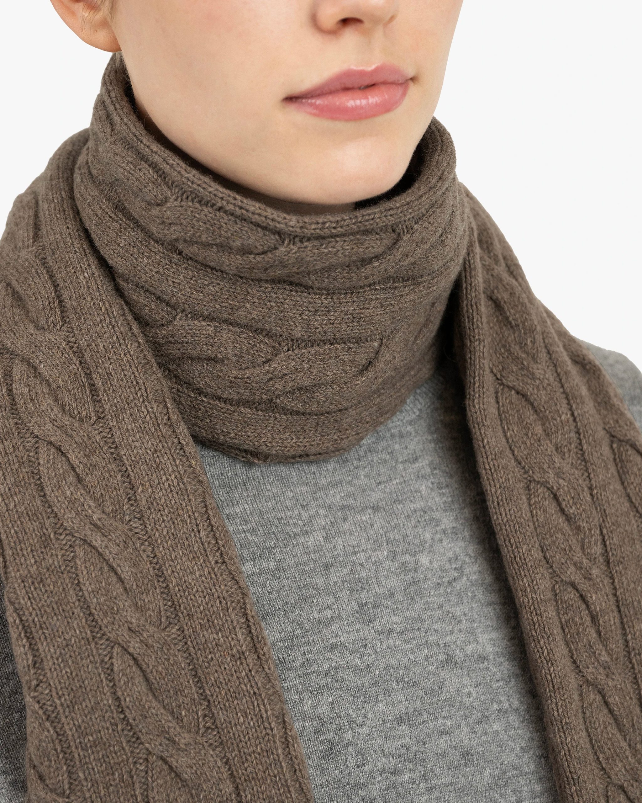 Cable Knit Maxi Scarf – Brown