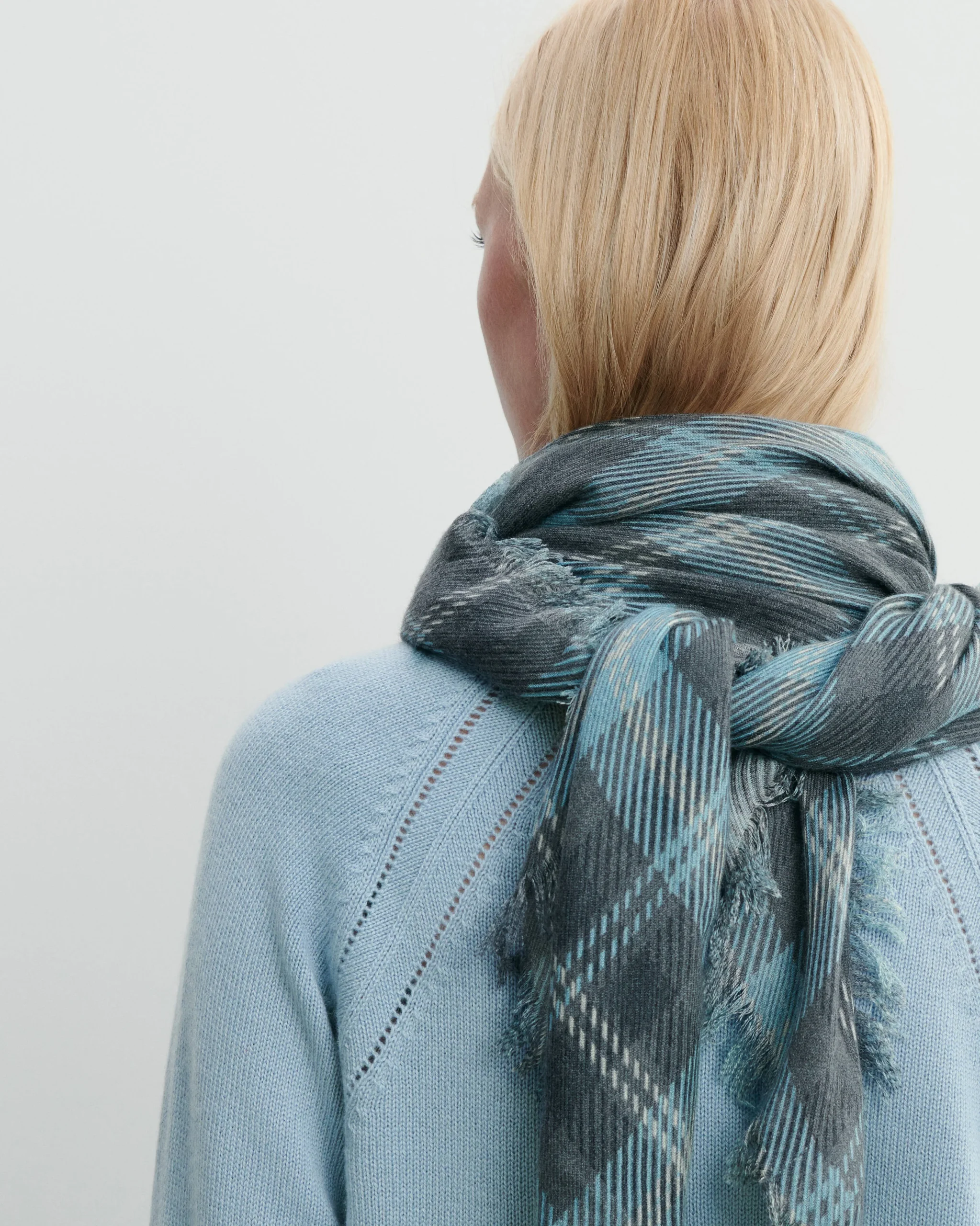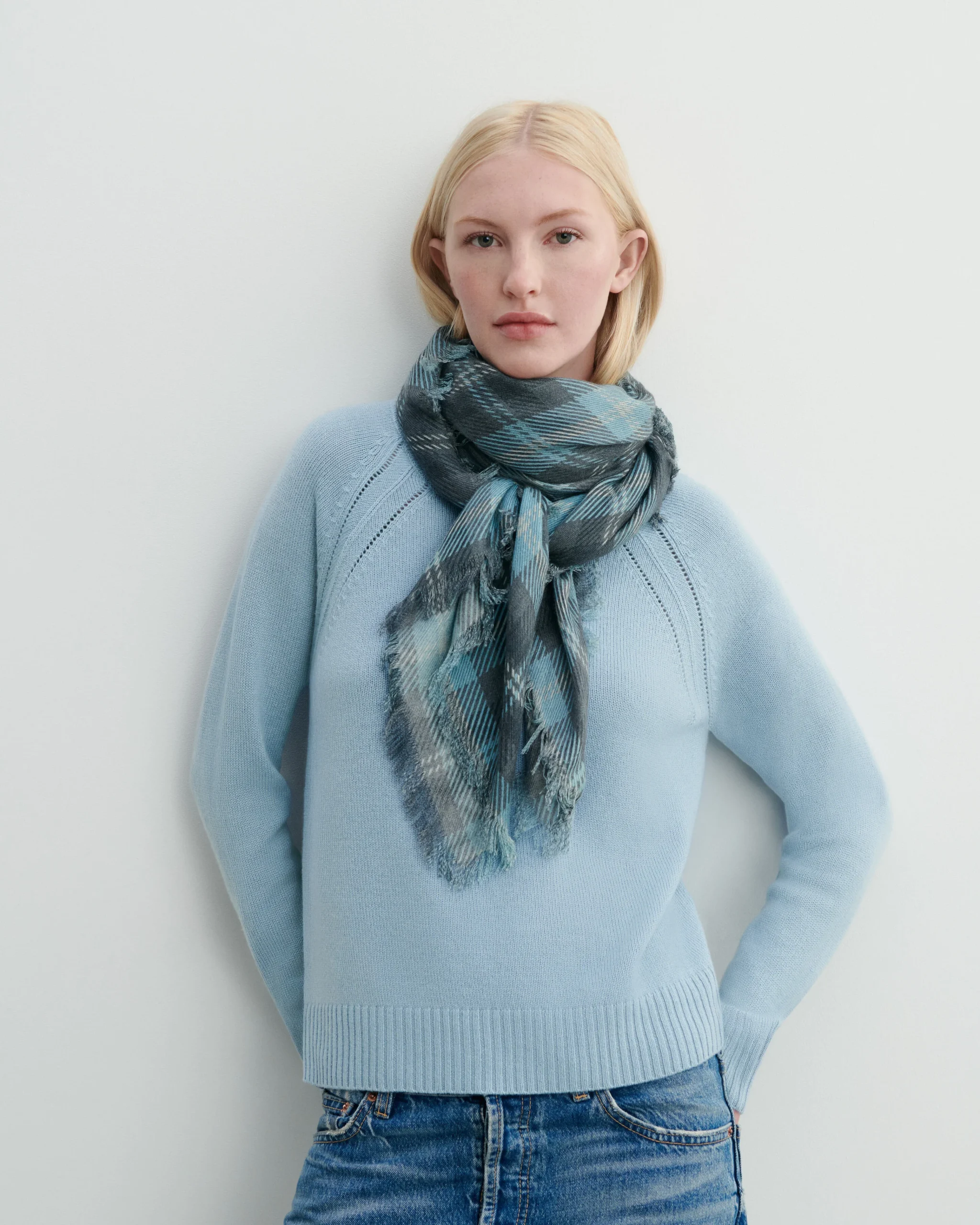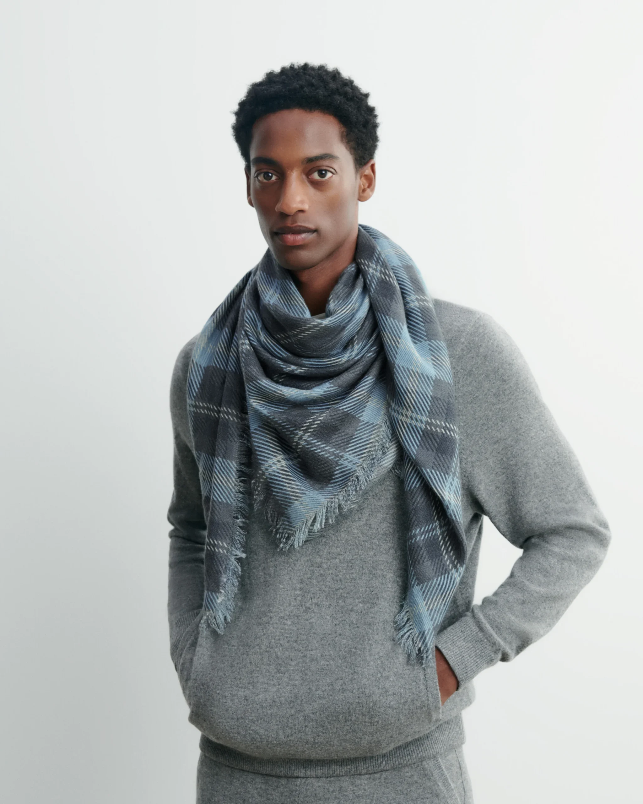 Carré en cachemire à motif tartan. Modèle mixte, pour femme et homme.
