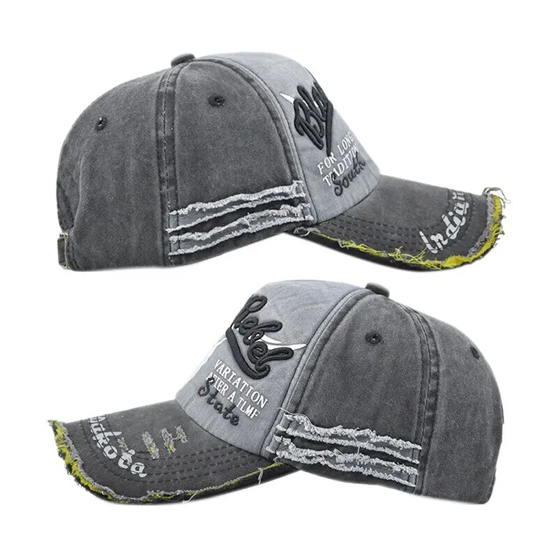Casquette Baseball Effilochée de Style Vintage en Coton