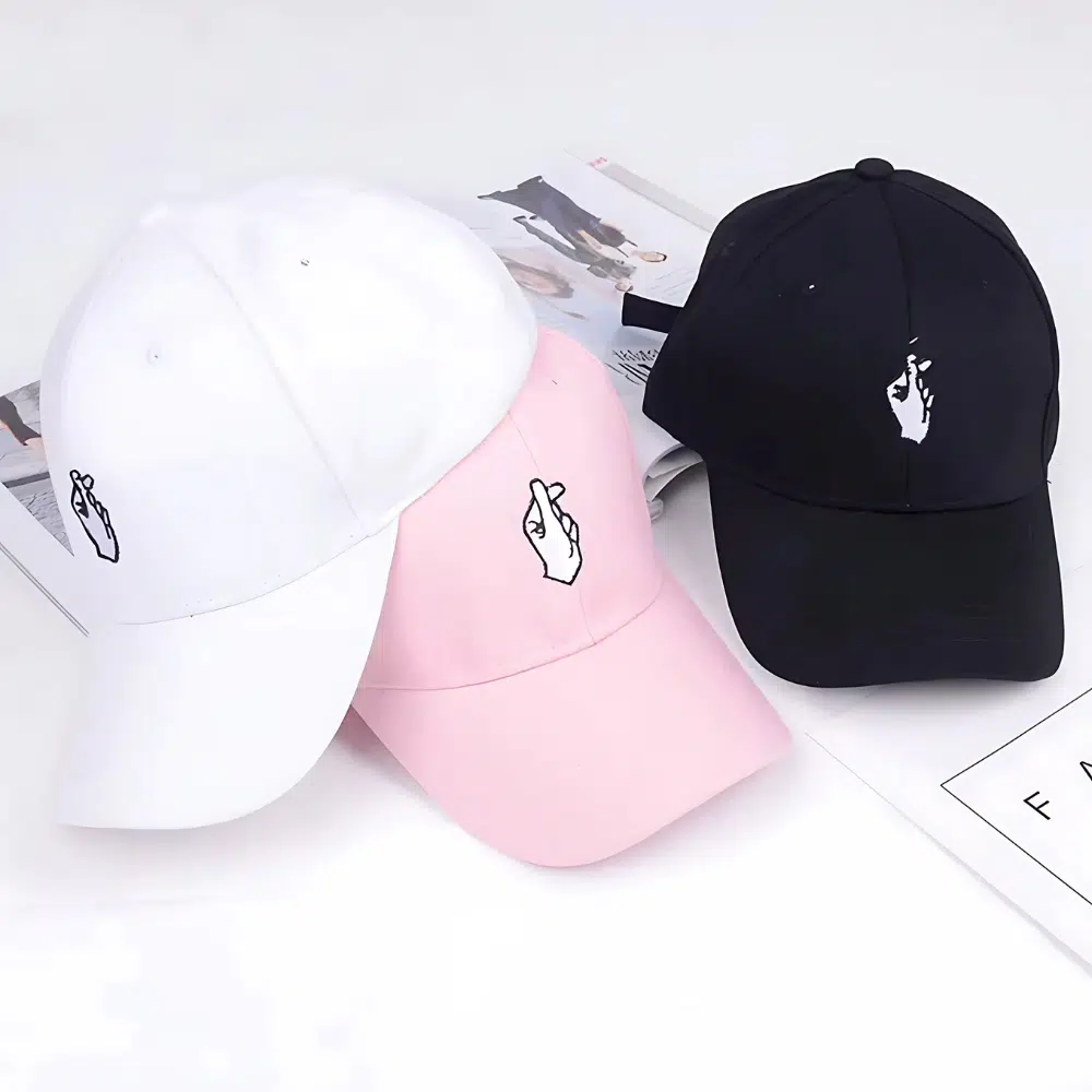 Fan de K-Pop ou juste accro au style kawaii ? La casquette femme tendance K-Pop Heart te parle direct au cœur (littéralement). Blanche, noire ou rose, elle affiche le célèbre geste des doigts en mini cœur. Une touche mignonne, tendance, et un brin rebelle. À porter en concert, en ville ou juste pour faire battre les looks.