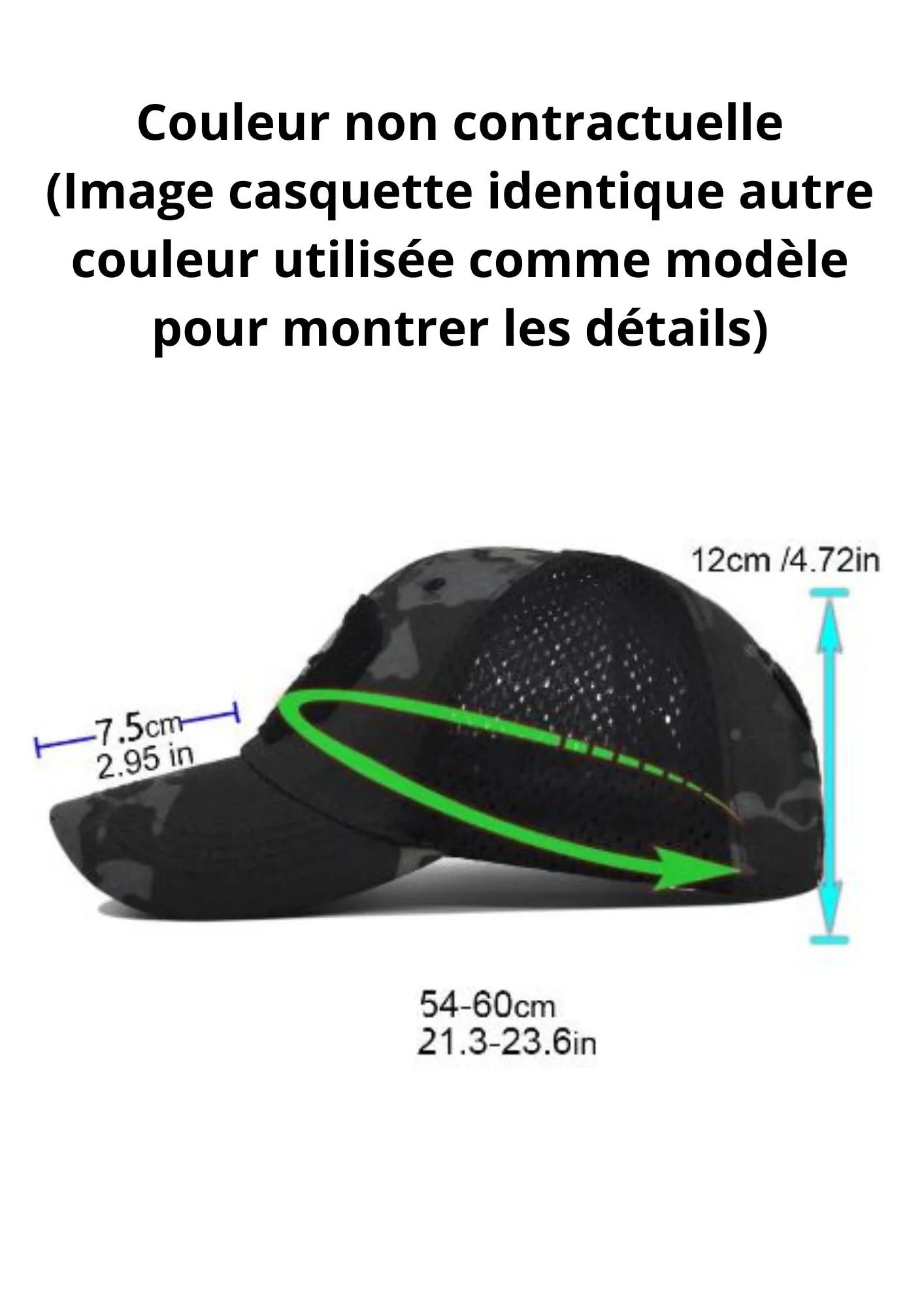 Le Filet antérieur de cette Casquette Style Militaire Trucker permet une bonne Ventilation du Cuir chevelu. Elle est ajustable et anti-Transpiration.