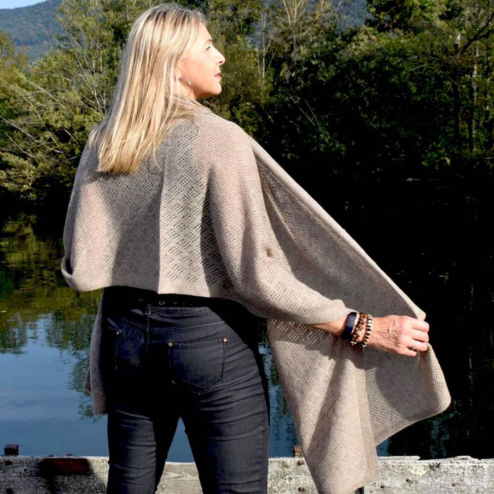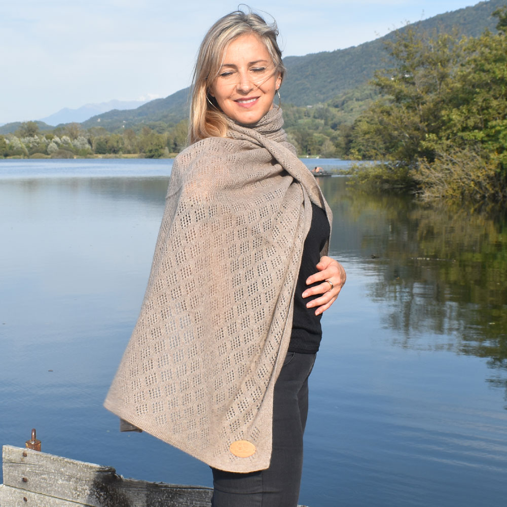Ce châle est un modèle très chic et très élégant, il est indispensable dans la garde-robe des femmes. Grâce à sa matière 100% cachemire ce châle peut se porter en hiver à l’intérieur ou à l’extérieur, soit comme un plaid soit comme une grande écharpe, par exemple une soirée d’hiver sur le canapé ou devant l’ordinateur pendant le télétravail. Grâce à son tissage léger et délicat il peut se porter toutes les saisons, par exemple en été sur la plage comme un petit top transparent ou comme une jupe attachée, par exemple une soirée entre amis ou en famille à l’extérieur.