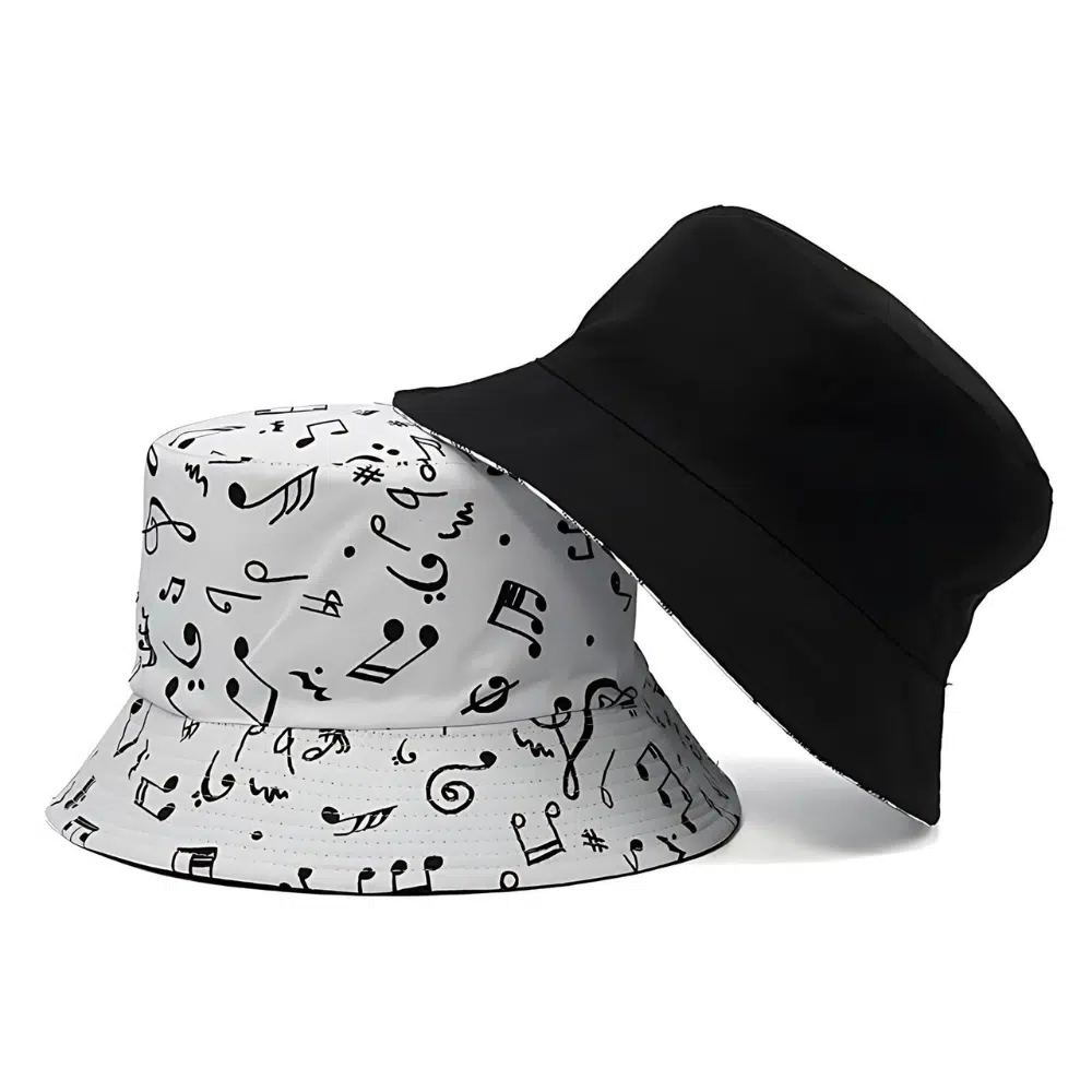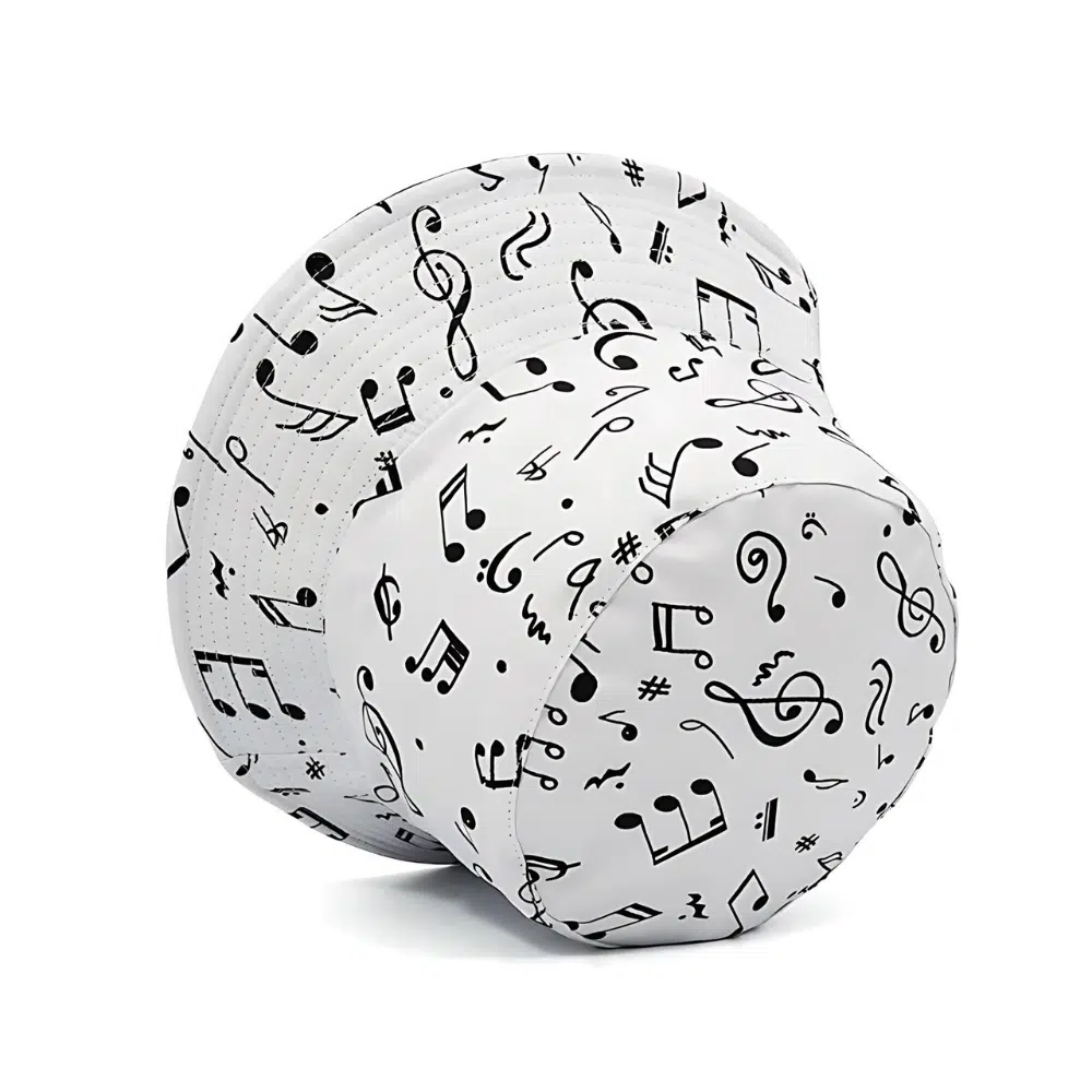 Découvre le Chapeau bob Musique ! : ton nouvel hymne au style. Avec ses notes de musique dansantes sur fond blanc, il crie ton amour pour la mélodie tout en te protégeant avec style. Conçu pour durer et s’adapter à toutes tes aventures, ce bob n’est pas qu’un chapeau, c’est un morceau de toi. Ajoute-le à ta collection et laisse ta passion pour la musique guider ton look.