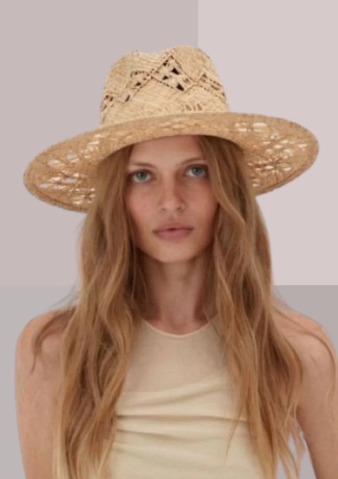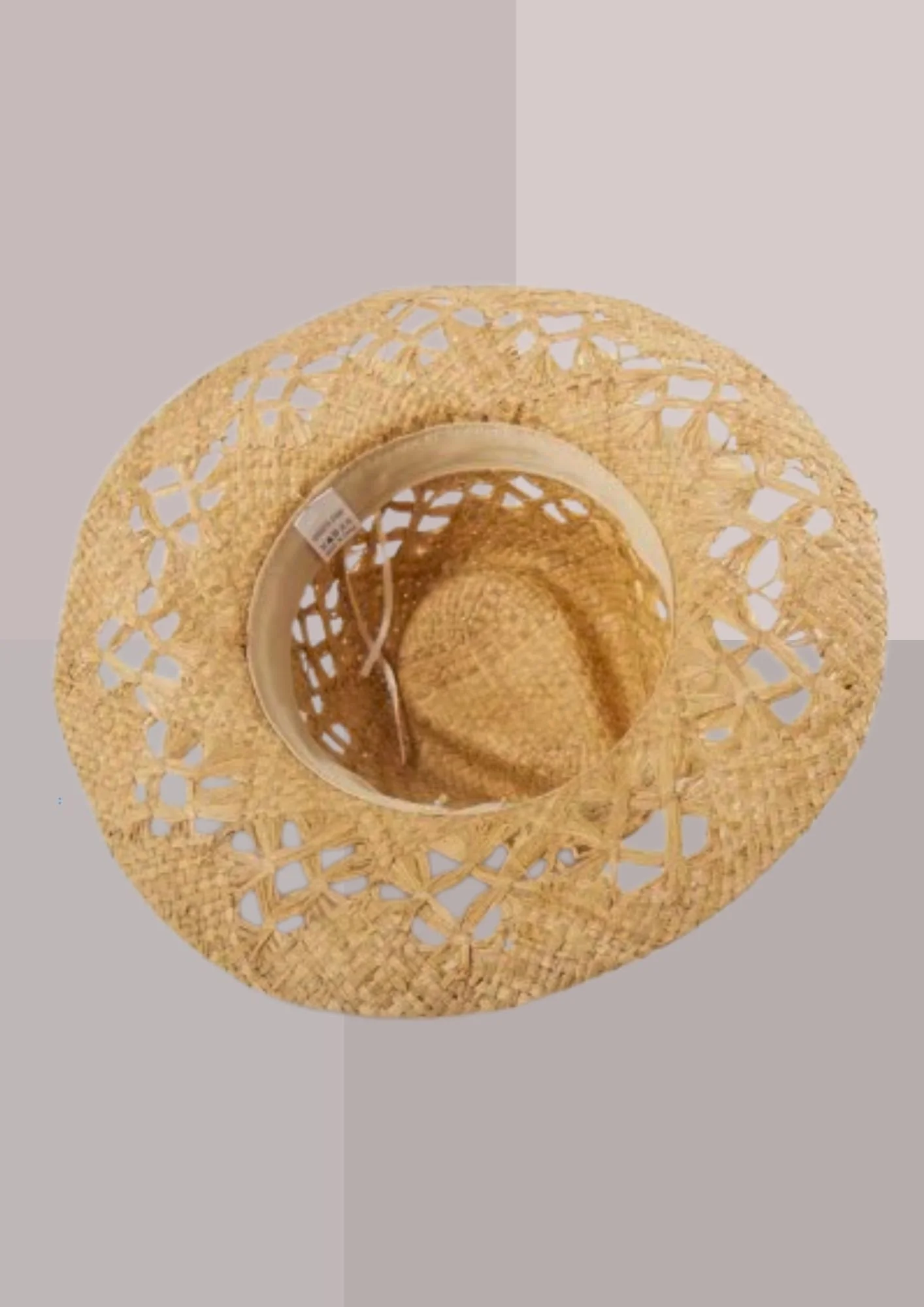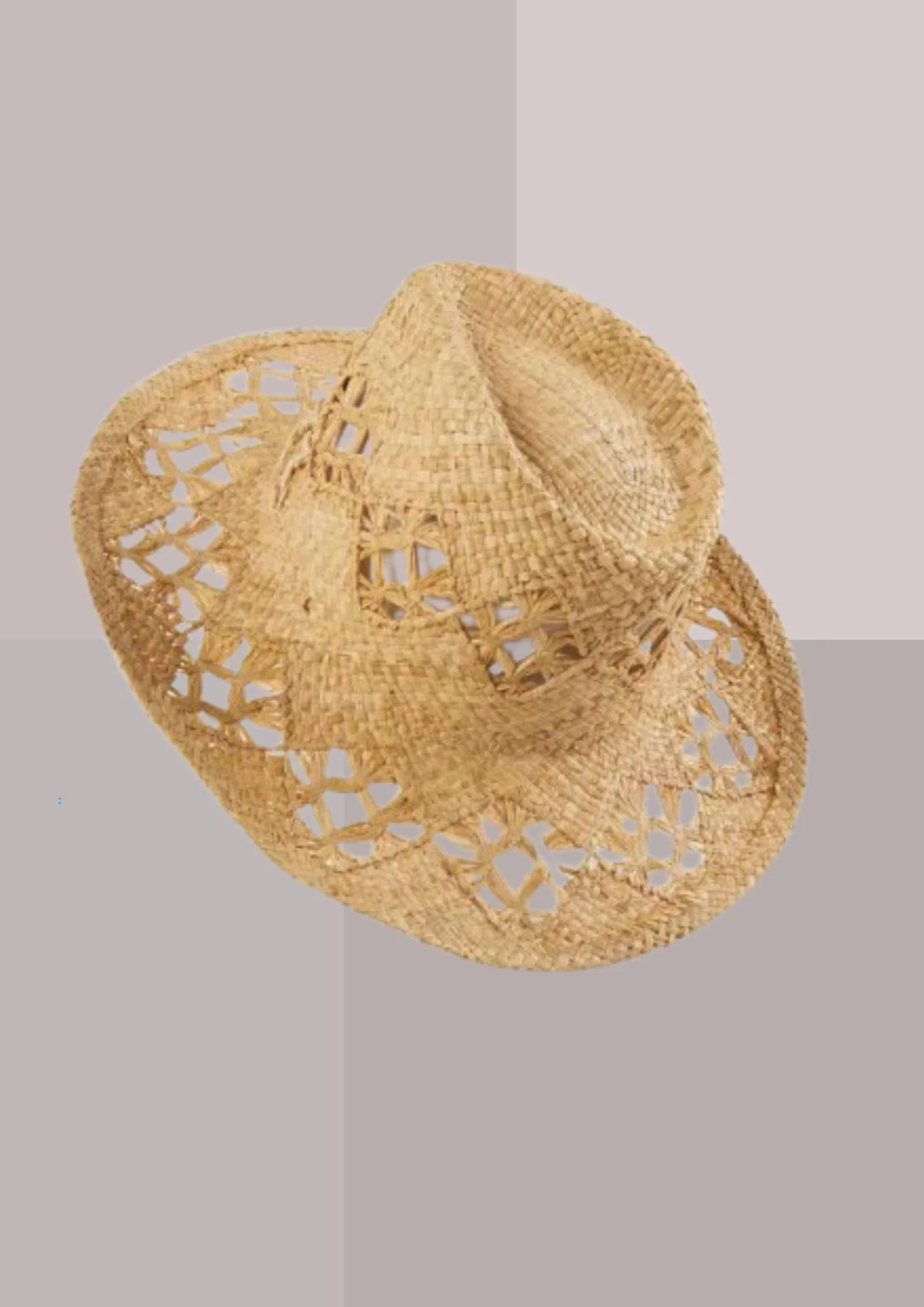 Optez pour un Fédora Femme avec ce superbe Couvre-Chef tissé en Raphia ajouré ; une Version luxe du Chapeau de Paille Cowboy chic, tendance et original.