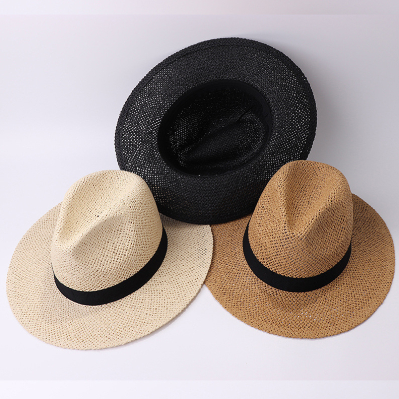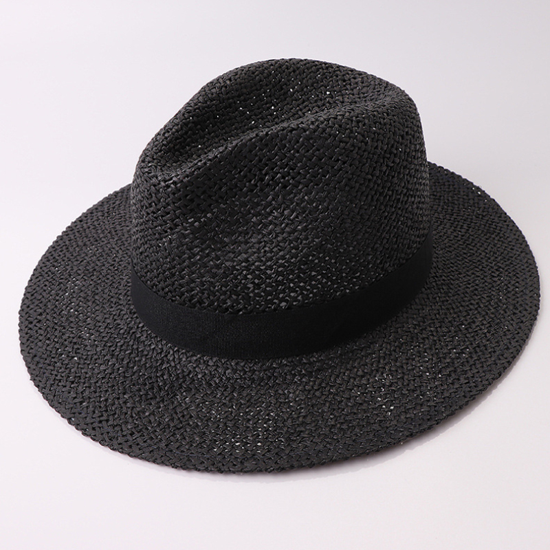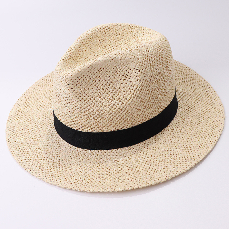 Chapeau de paille à large bord avec ruban noir pour hommes et femmes