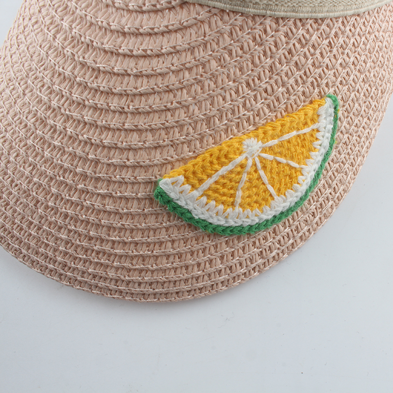 Chapeau de paille enfant à grande visière avec broderie de fruits