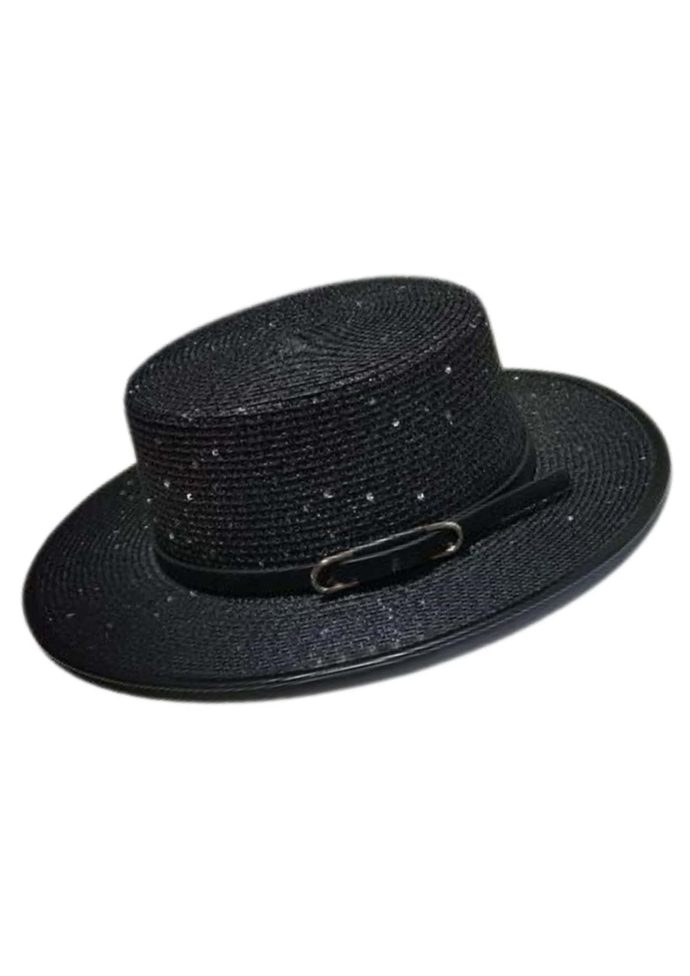 CHAPEAU DE PAILLE FEMME CHIC NOIR AVEC BRILLANTS