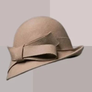 Le chapeau cloche porte ce nom en raison de sa forme distinctive qui rappelle celle d’une cloche. Introduit dans les années 1920, ce style de chapeau épouse étroitement la tête et s’évase légèrement vers le bas, créant une silhouette élégante et féminine. Il est devenu emblématique des années 20 et 50, souvent associé à une allure chic et rétro.
