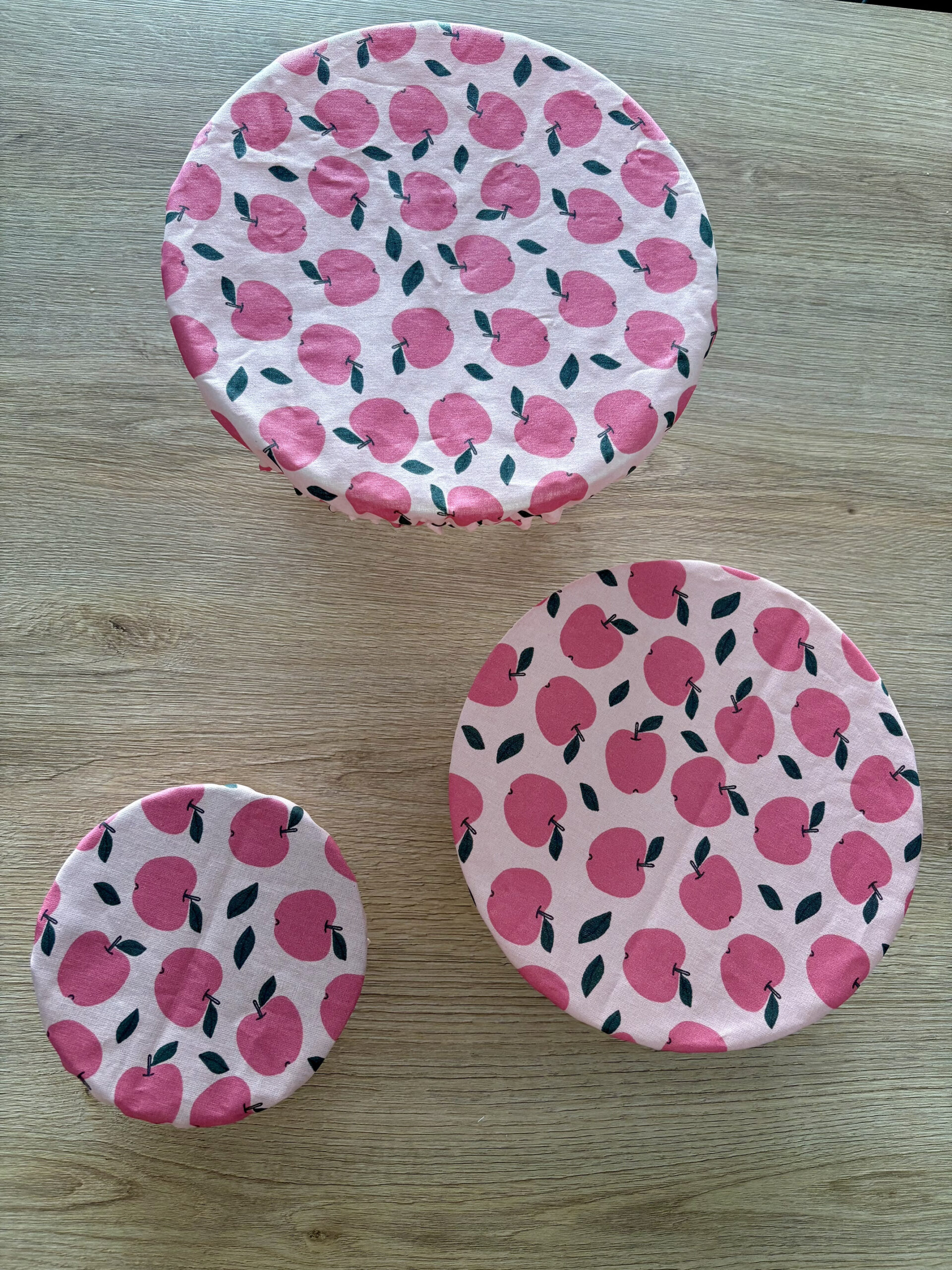 Matière : Fabriquée en coton enduit imperméable certifié Oeko tex (sans substance toxique) et dotée d’une élastique afin d’avoir une bonne adhérence au niveau des plats.