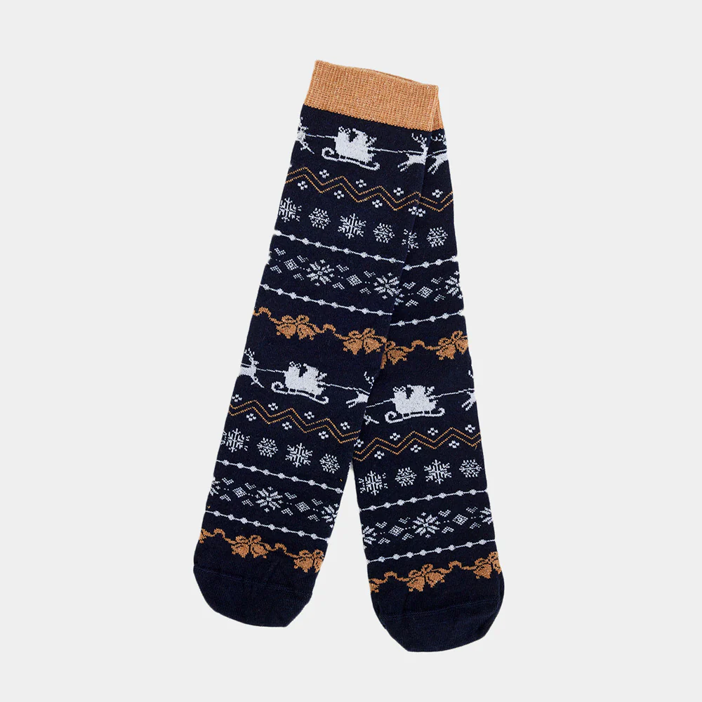 Chaussettes de Noël Unisexes Bleues avec Rennes et Neige