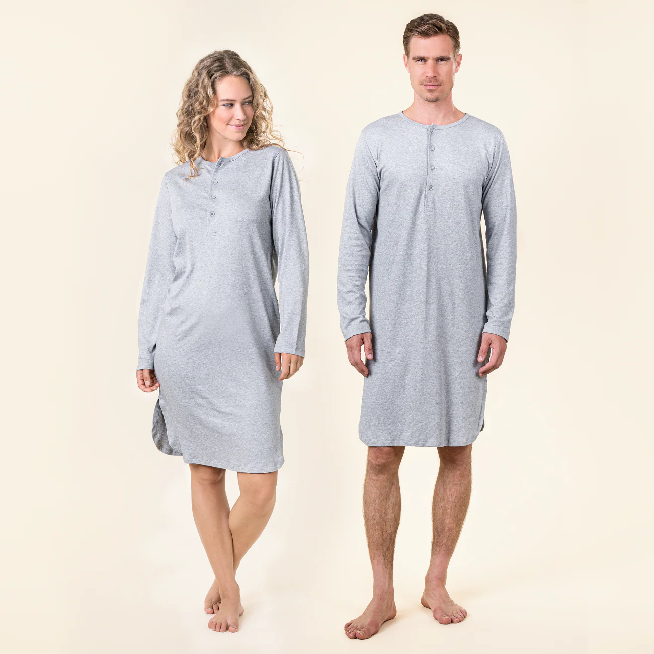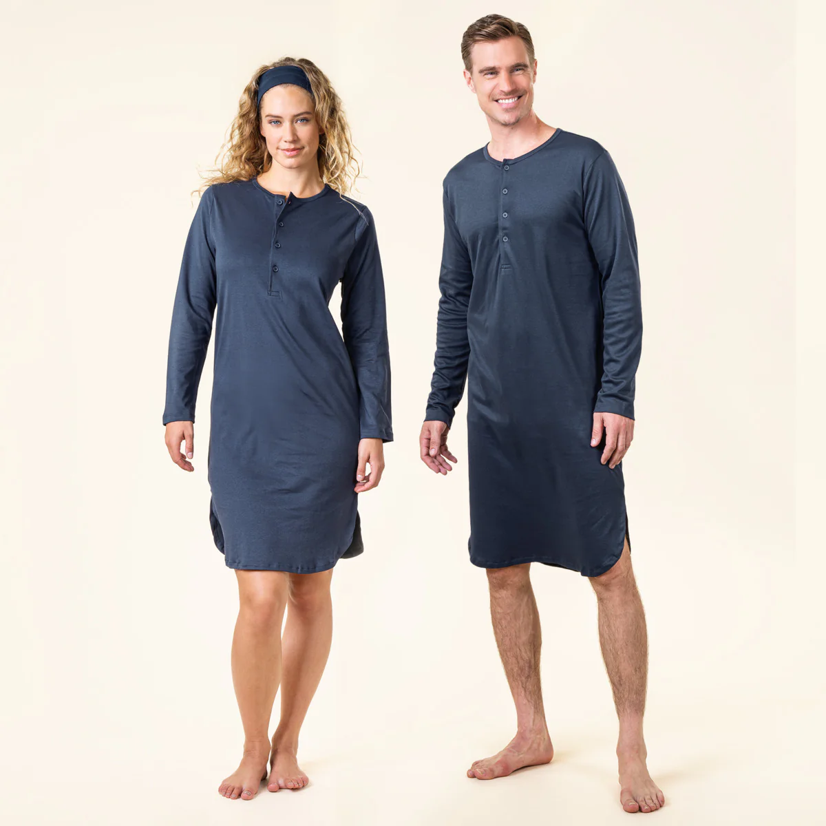Idéale pour l’automne et l’hiver, cette chemise de nuit unisexe en coton bio allie confort, praticité et style intemporel. Une pièce durable et éthique, régulièrement réapprovisionnée.