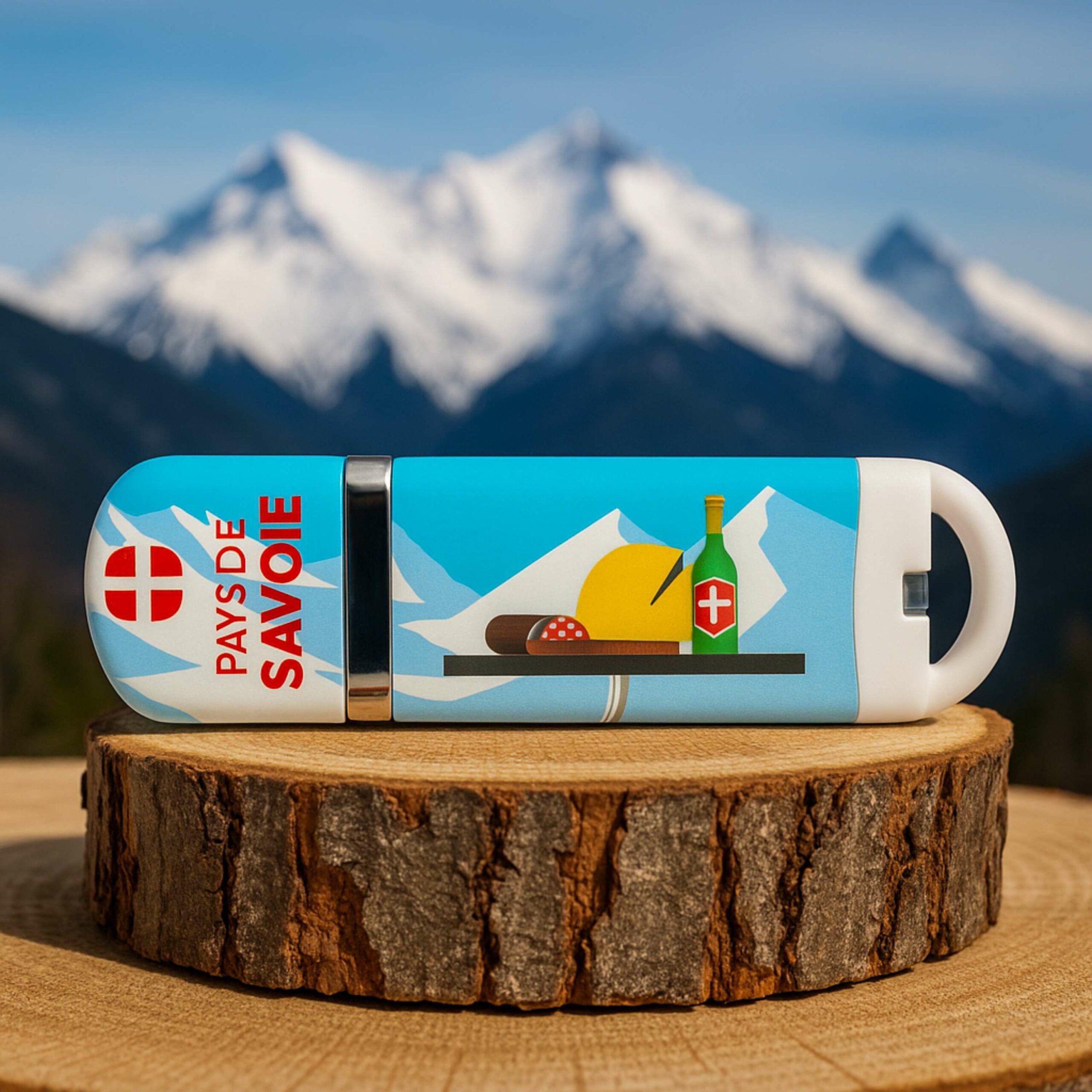 Avec la Clé USB pays de Savoie, ne vous contentez plus de stocker vos données : faites-le avec fierté et style, à l’image de votre territoire.