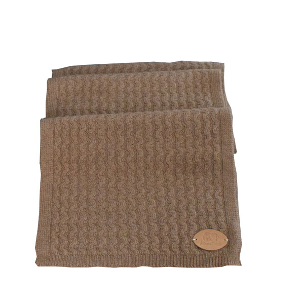Echarpe chaude en laine de chameau avec la couleur naturelle de la laine marron. La matière est douce au toucher et l’écharpe à une bonne épaisseur afin de passer un hiver tranquille.