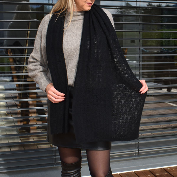 Écharpe femme légère en cachemire – Cette grande écharpe toute en légèreté au tissage ajouré vous apporte une touche supplémentaire de féminité.
