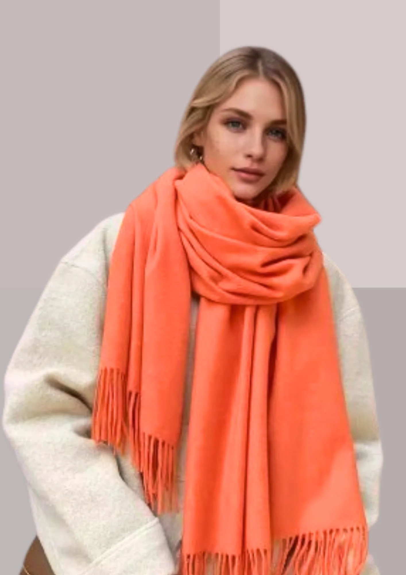 Echarpe Femme Orange à la Douce Nuance Capucine, moelleuse et confortable, très chaude et Taille maxi pour passer l’Hiver le Cou emmitouflé bien protégé.