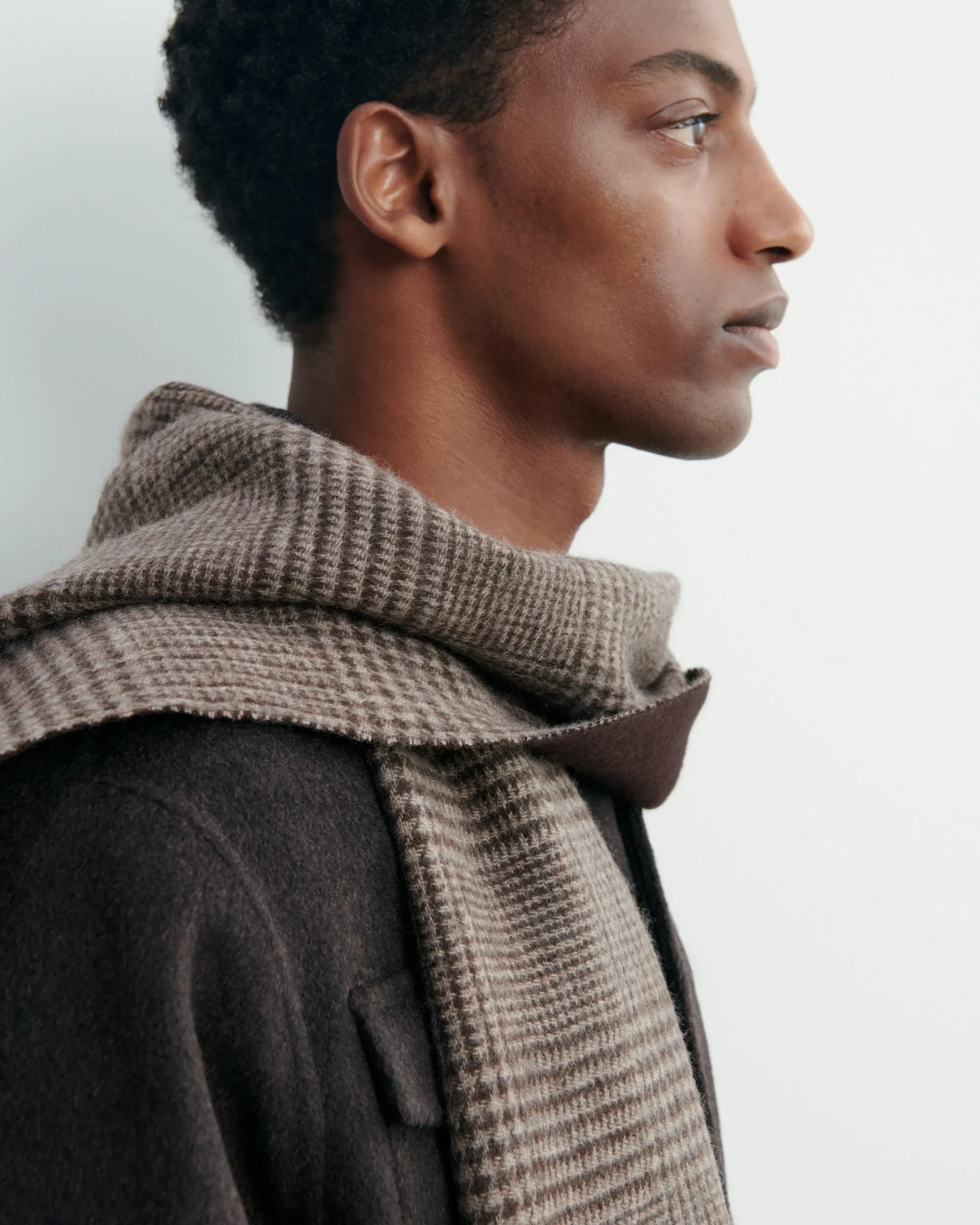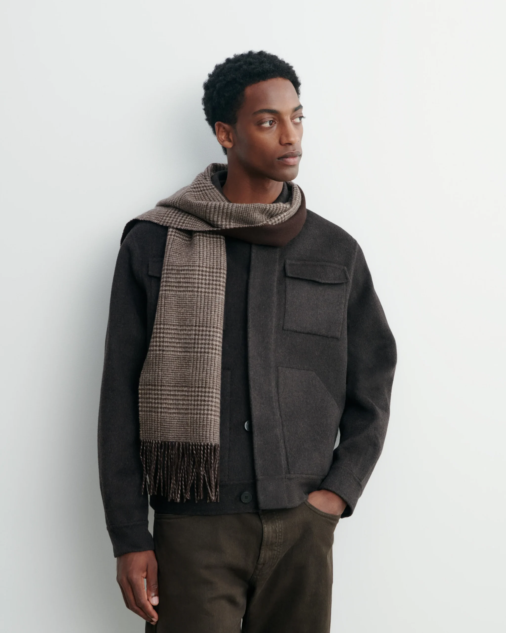 Écharpe en cachemire à motif Prince de Galles. Modèle frangé, pour femme et homme.