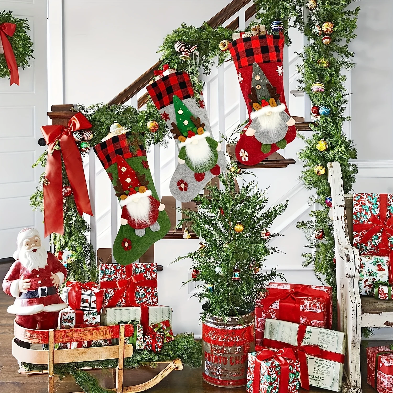 Cet Ensemble de 3 chaussettes de Noël en feutre doux est parfait pour apporter un charme rustique à votre décoration de Noël intérieur. Ses motifs de lutins ajoutent une touche de magie aux fêtes !