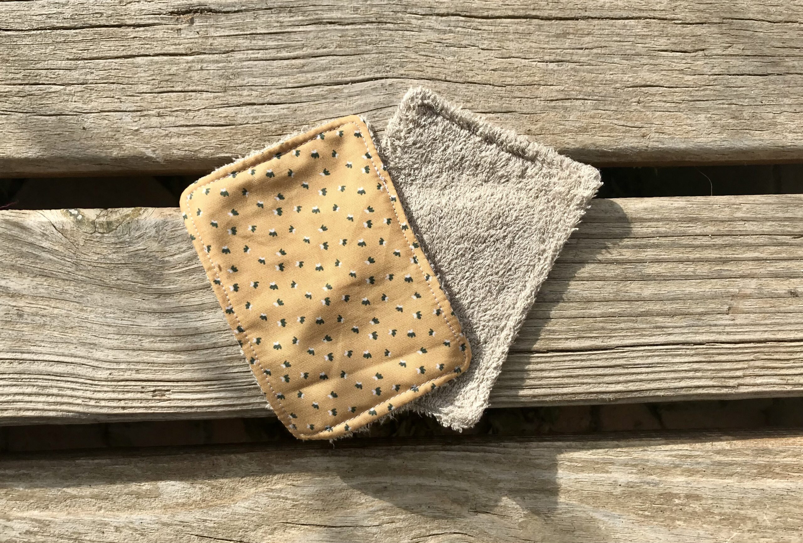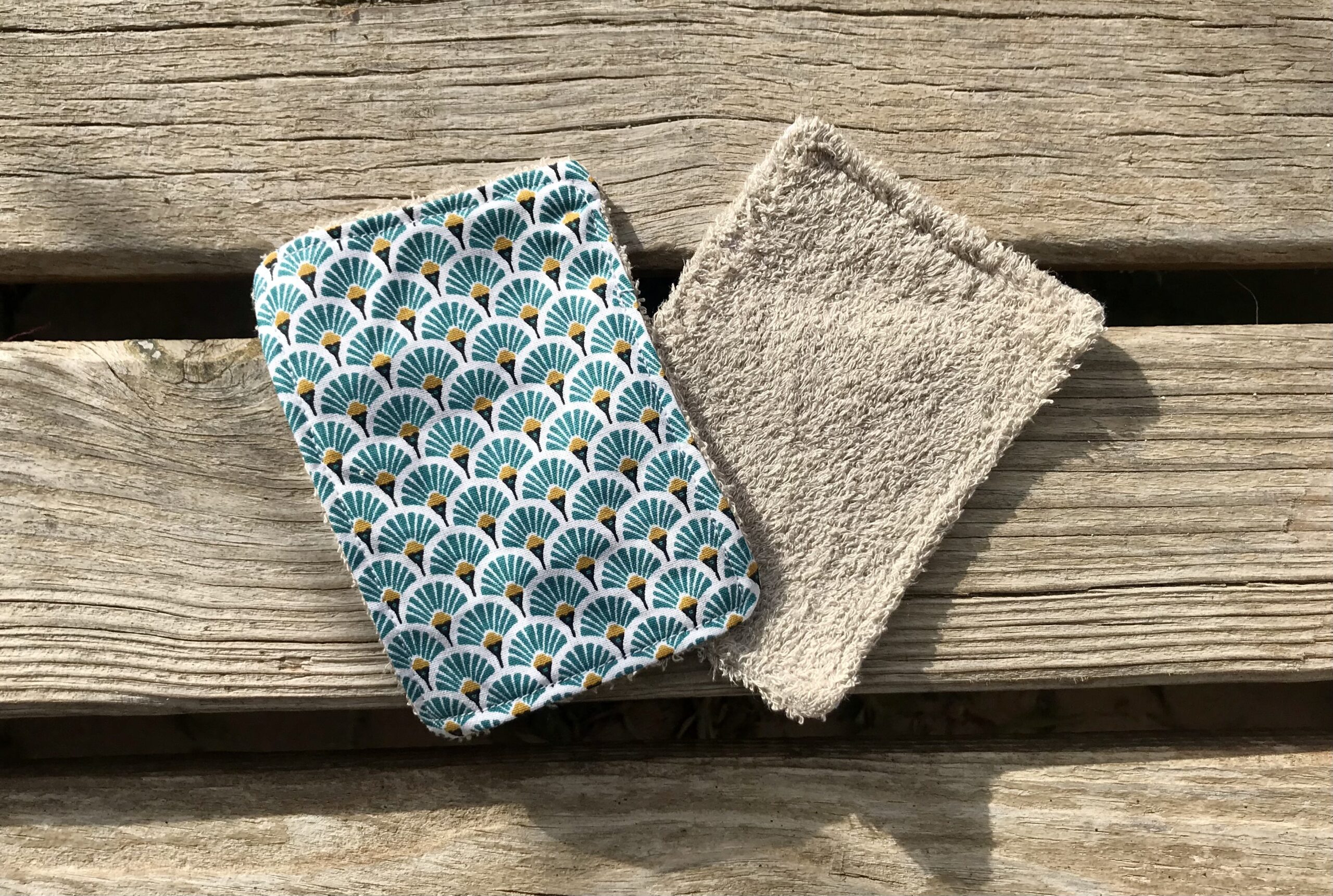 – Un côté en éponge de bambou couleurs noisette et un côté en coton.