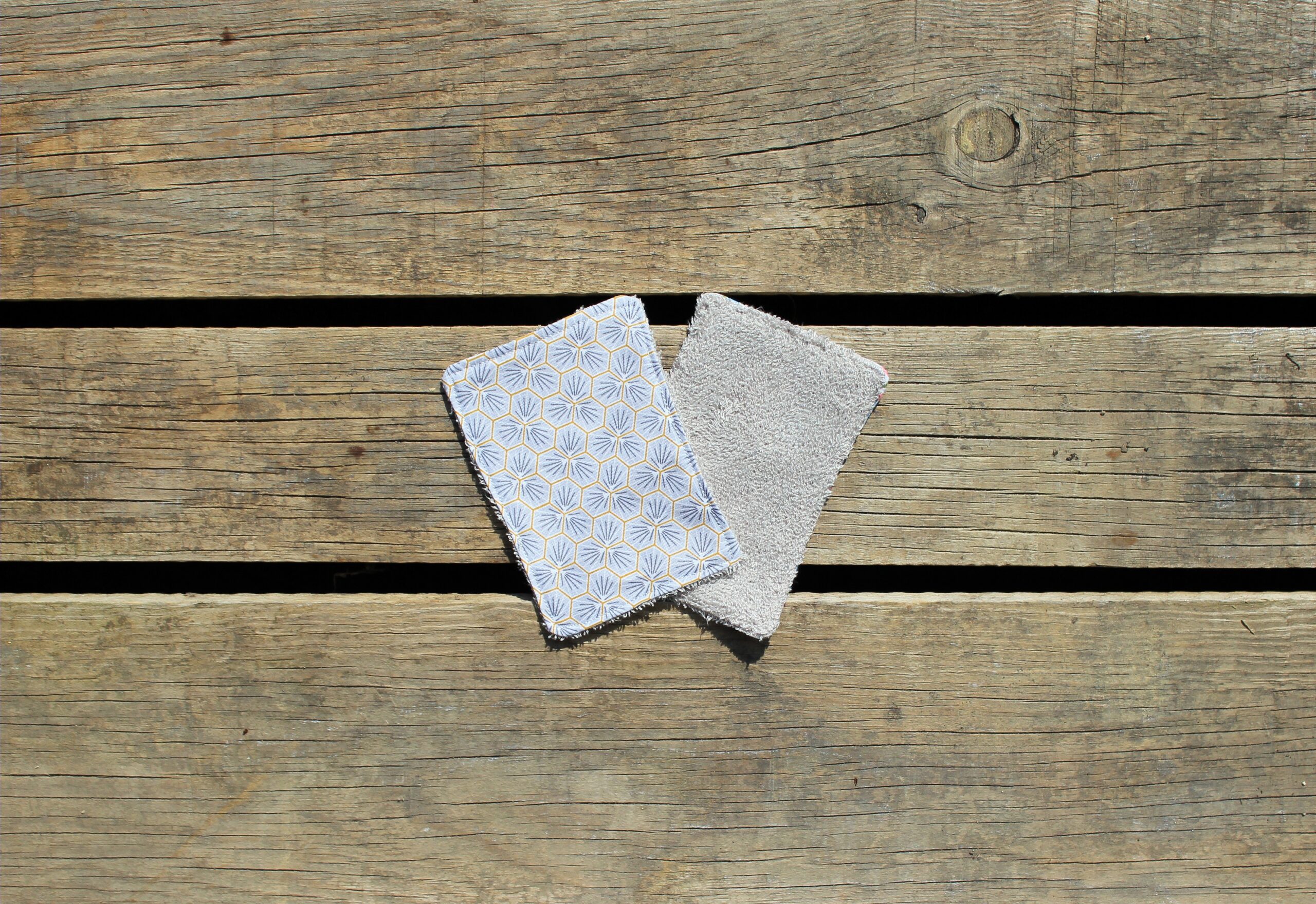 – Un côté en toile de jute et un côté en éponge de bambou. (finition à la surjeteuse)